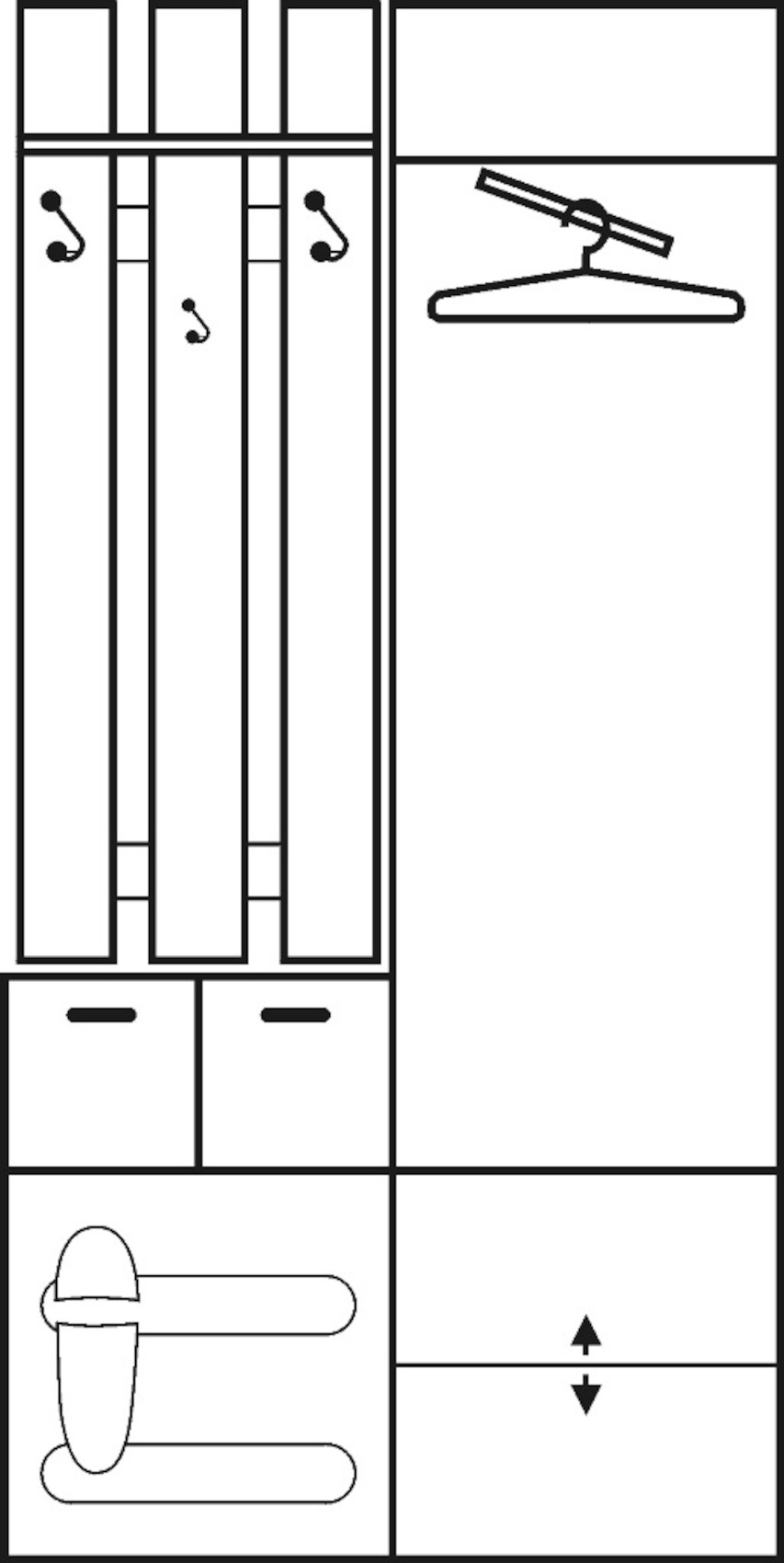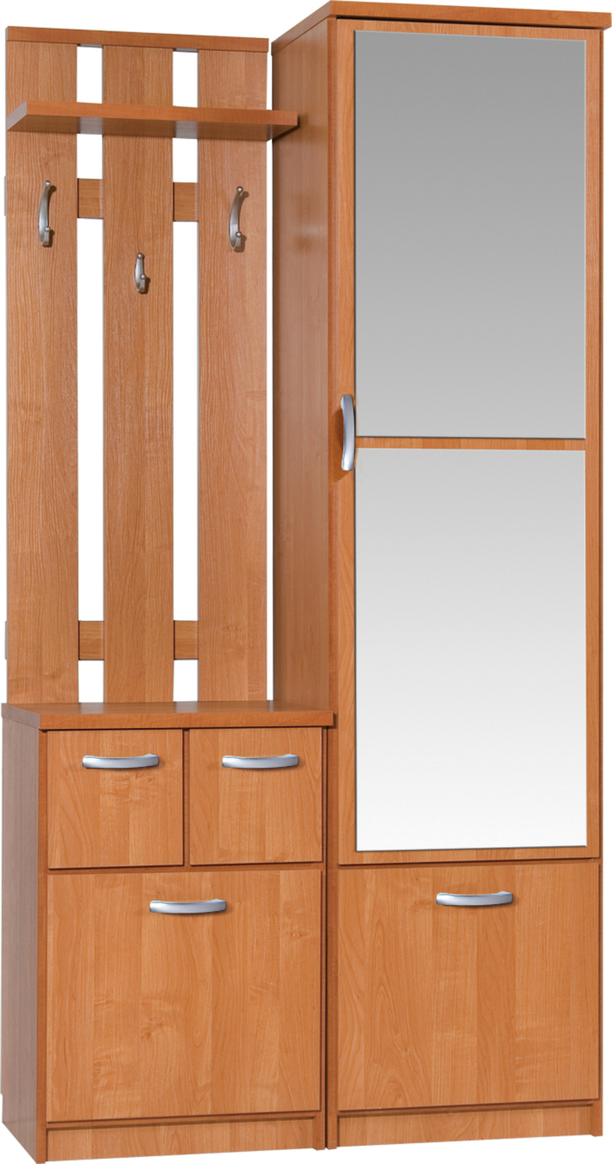 Předsíňová stěna Barcelona 100 LUX se zrcadly a věšákem má moderní design a praktický úložný prostor. Je vhodným doplňkem do každého interiéru. Má výškově nastavitelnou polici. Předsíňová skříň je vyrobena z 16 mm lamina, na výběr z několika barevných variant. Vnitřní vybavení skříně viz obrázek.