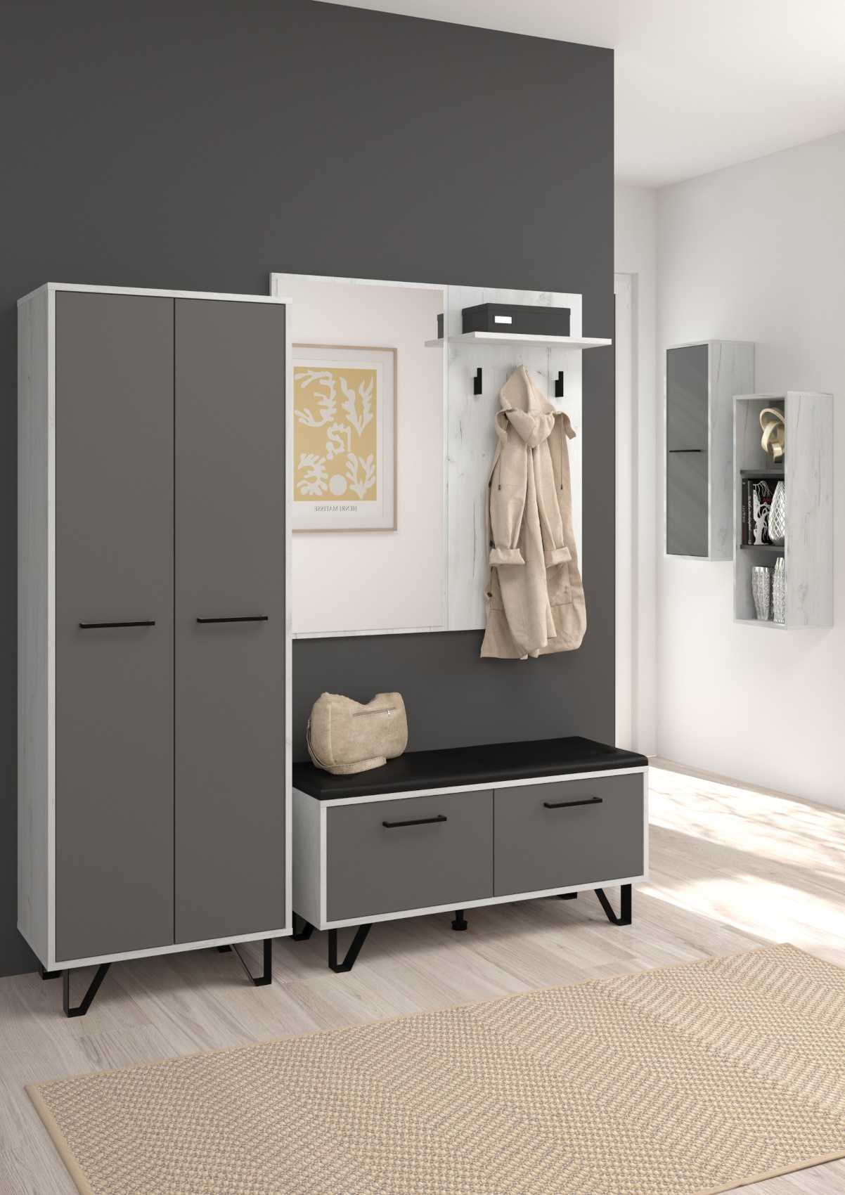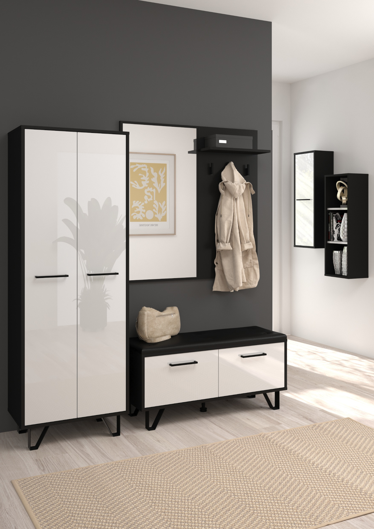Předsíň je sestavena z jednotlivých komodit systému Boss, ze kterých si vytvoříte svůj vysněný obývací pokoj, studentský pokoj, relaxační místnost či pracovnu.