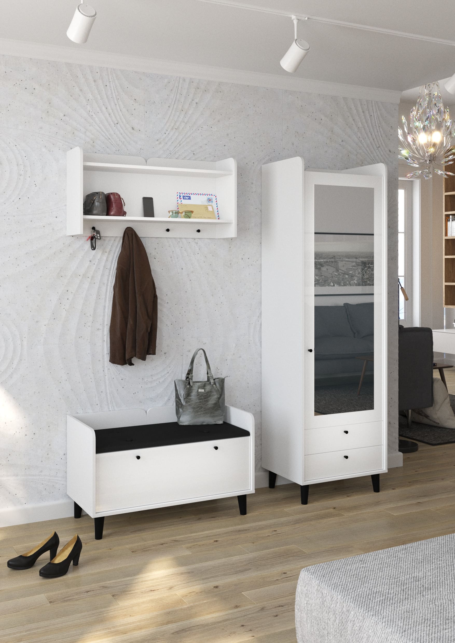 Sestava se skládá ze zrcadlové skříně Dolce 21, botníku Dolce 22 a věšáku Dolce 25.