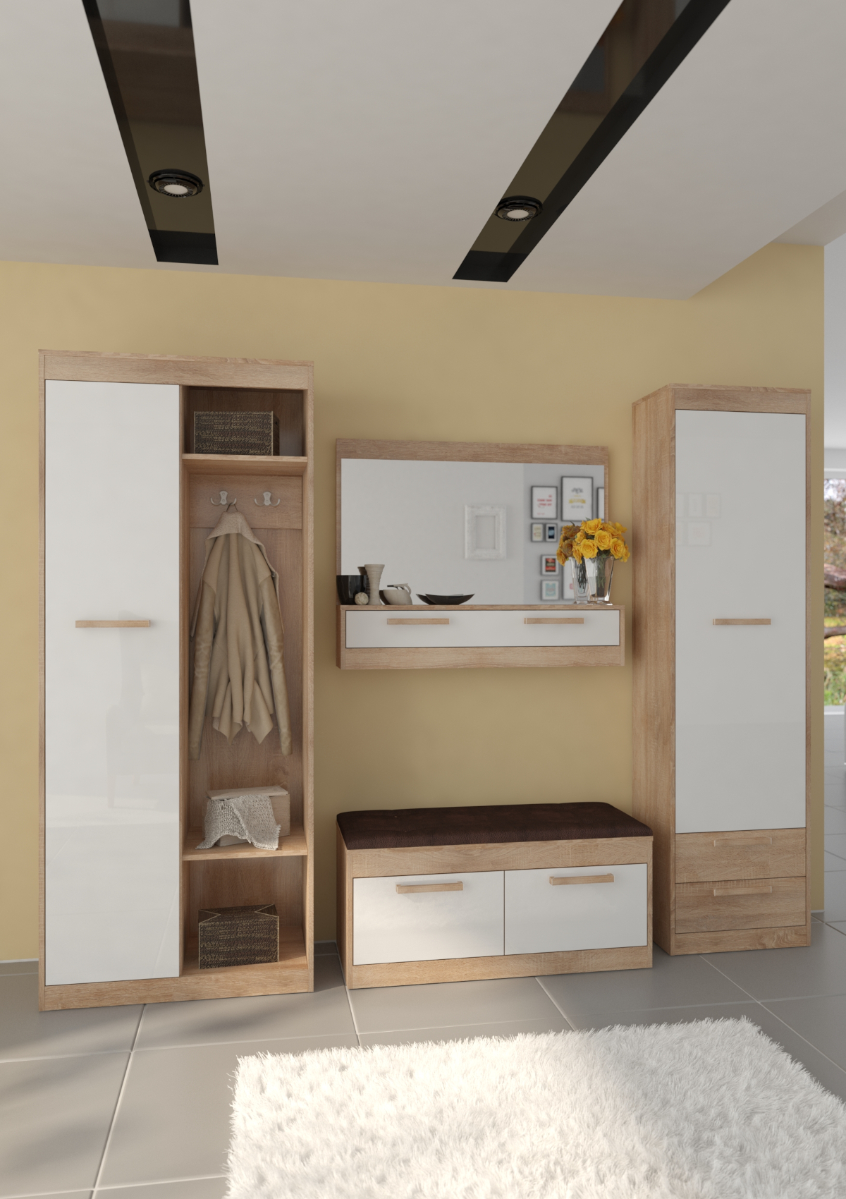 Předsíň Maximus 14 se hodí zejména do moderně zařízených interiérů. LTD materiál, o šířce 16 mm a 25 mm, ze kterého se nábytek skládá, zajišťuje vysokou a špičkovou kvalitu. Desky mají ABS hranění, které zvyšuje odolnost proti odštípnutí hran. Dvířka i zásuvky jsou vybaveny systémem tichého dovírání. Předsíň si můžete vybrat z několika barevných variant. Zajímavý design barev dodává stěně ještě více na luxusu a nadčasovosti.