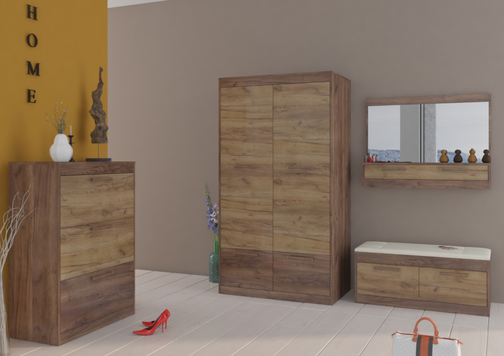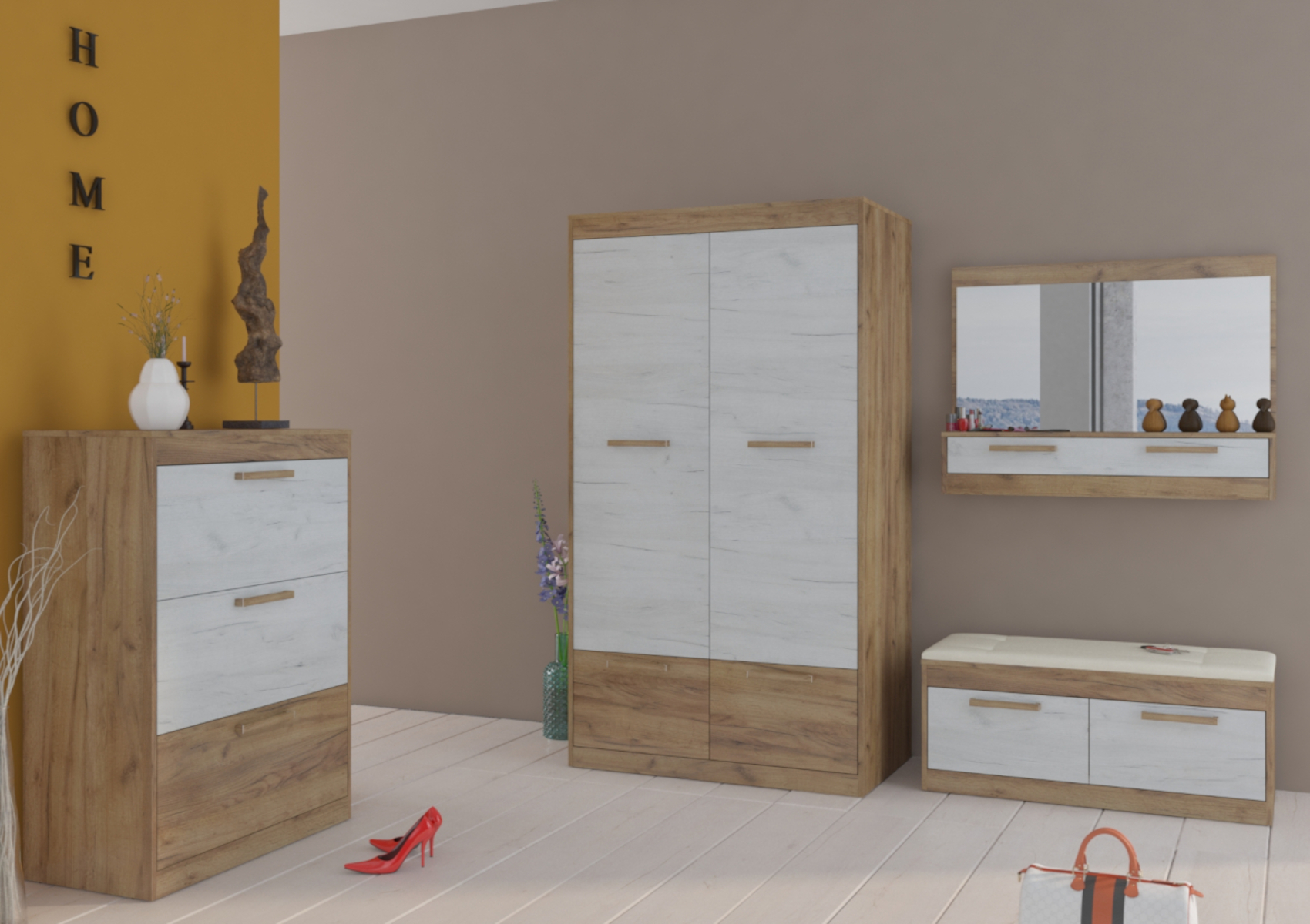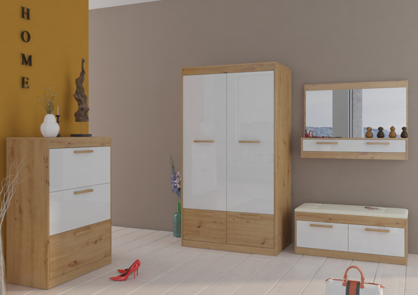 Předsíň Maximus 15 se hodí zejména do moderně zařízených interiérů. LTD materiál, o šířce 16 mm a 25 mm, ze kterého se nábytek skládá, zajišťuje vysokou a špičkovou kvalitu. Desky mají ABS hranění, které zvyšuje odolnost proti odštípnutí hran. Dvířka i zásuvky jsou vybaveny systémem tichého dovírání. Předsíň si můžete vybrat z několika barevných variant. Zajímavý design barev dodává stěně ještě více na luxusu a nadčasovosti.