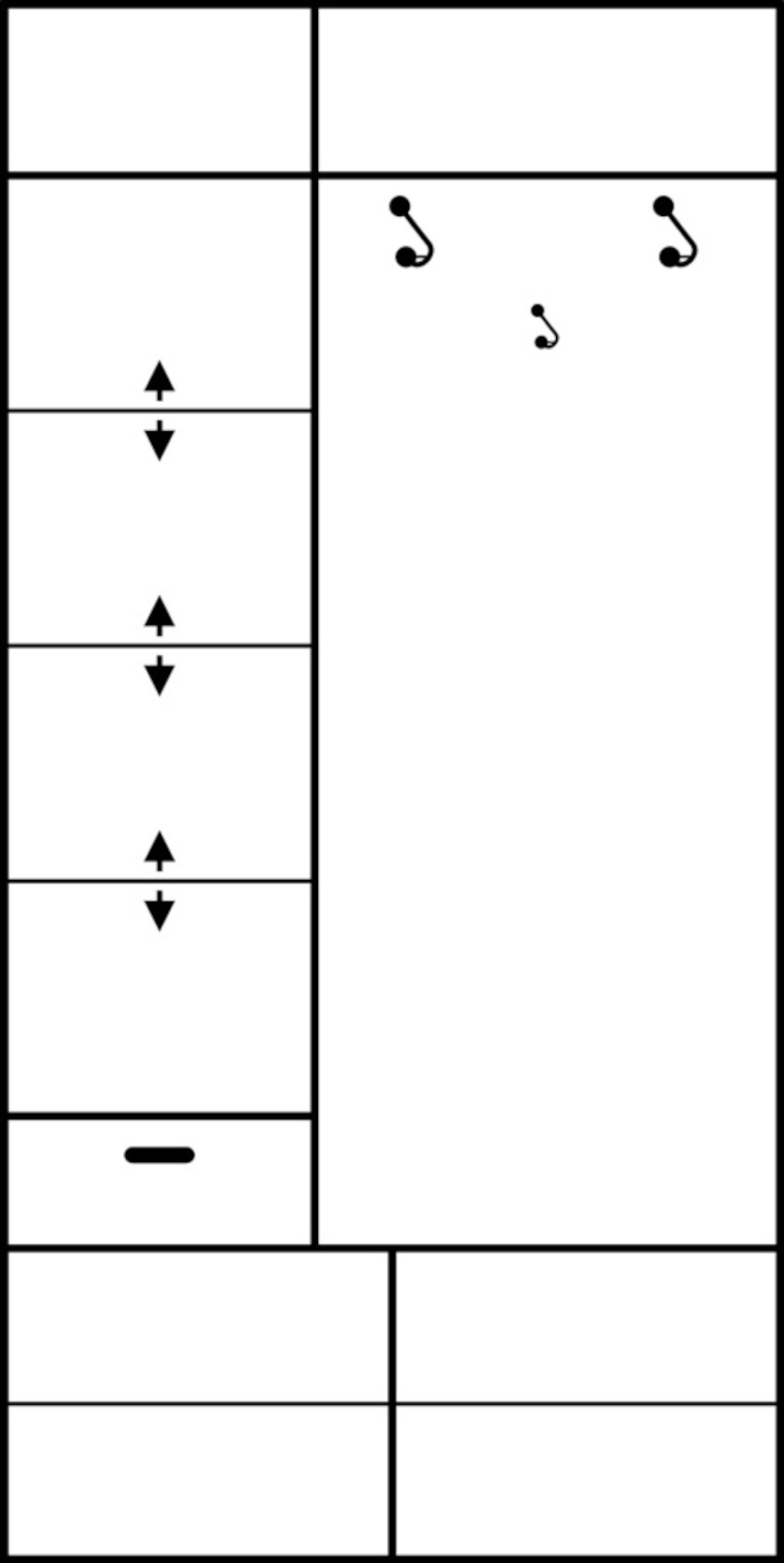 Předsíňová stěna Prince 1 se zrcadlem má jednoduchý klasický design a praktický úložný prostor. Najde uplatnění především v prostorově menších interiérech. Má výškově nastavitelné police. Předsíňová skříň je vyrobena z 16 mm lamina, na výběr z několika barevných variant. Vnitřní vybavení předsíňové sestavy viz. obrázek.