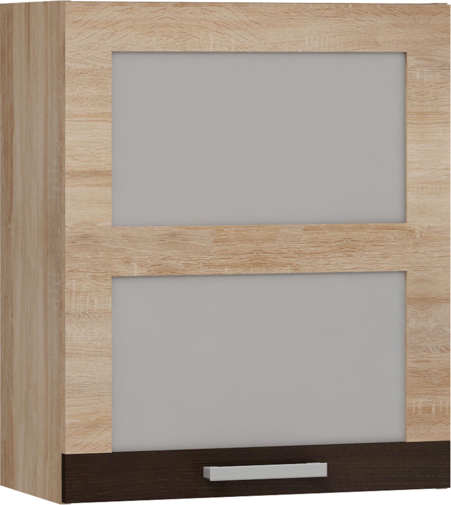 Horní prosklená skříňka W-60PN vyrobena z LTD 16 mm, skříňka má otvíraní typu výklop a uvnitř jednu polici.