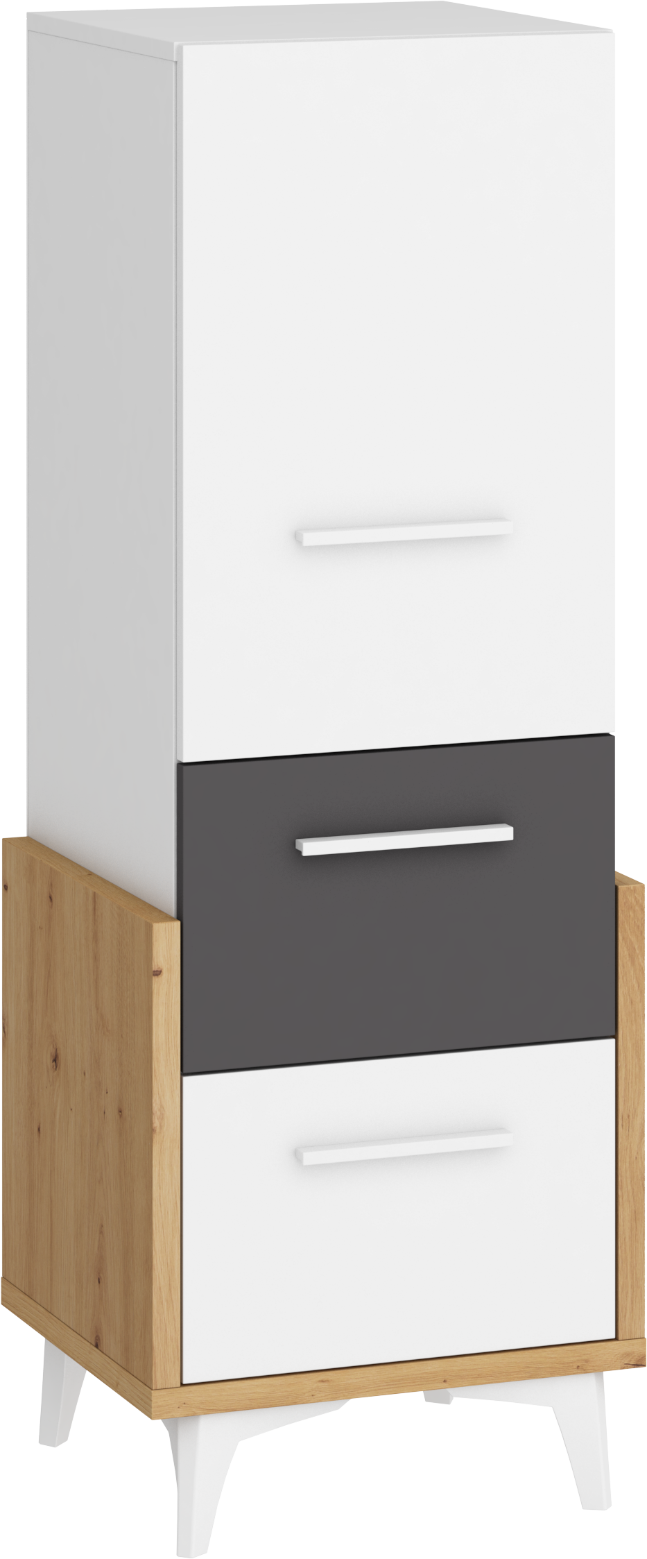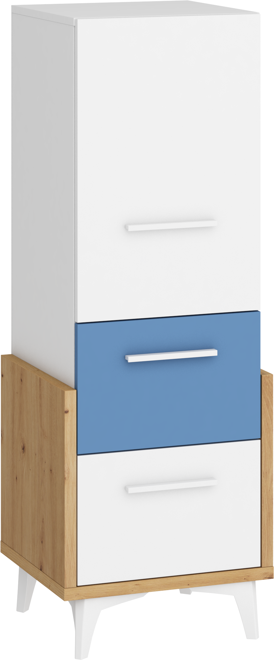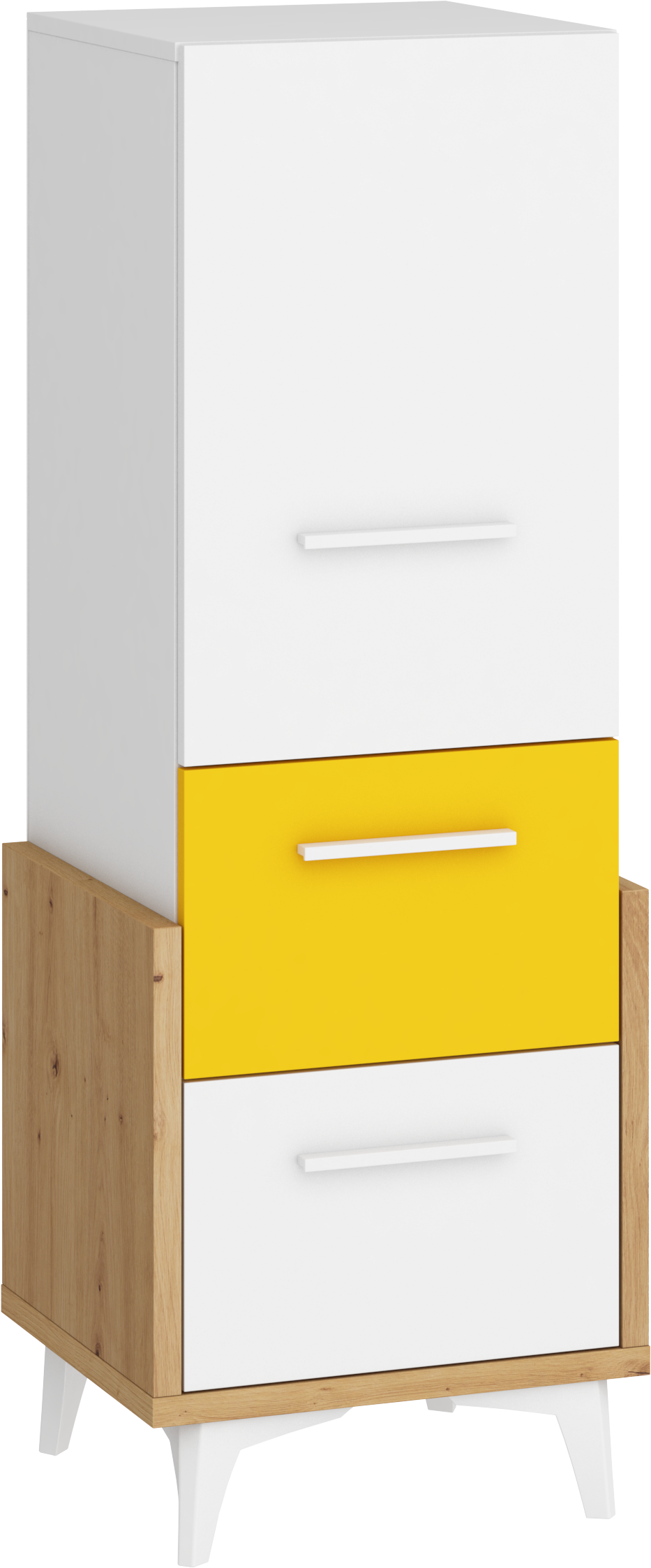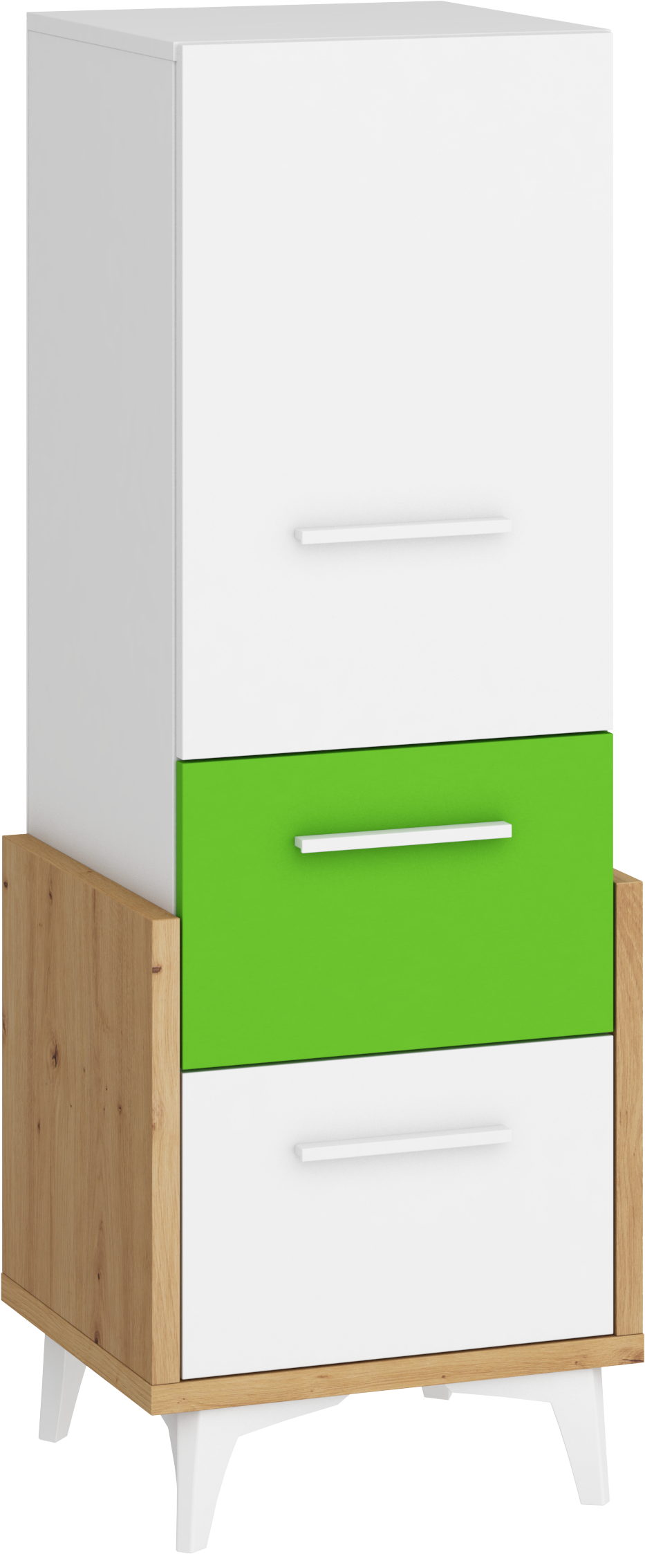 Skříňka Hey 01 patří ke kolekci nábytku HEY, který je nadčasový a díky svému modernímu designu vhodný do dětských a studentských pokojů. Produkty jsou vyrobené z kvalitního lamina s ABS úpravou hran, čímž je minimalizované riziko mechanického poškození či odštípnutí hrany. Korpusy mají sílu 25 mm, fronty a ostatní části mají sílu 16 mm. Dvířka i zásuvky jsou vybaveny systémem tichého dovírání. Výrazným prvkem systému jsou bílé 12 cm vysoké nožky z tvrzeného plastu, které jistě při úklidu oceníte. Nabízíme vám výběr z několika barevných dekorů.