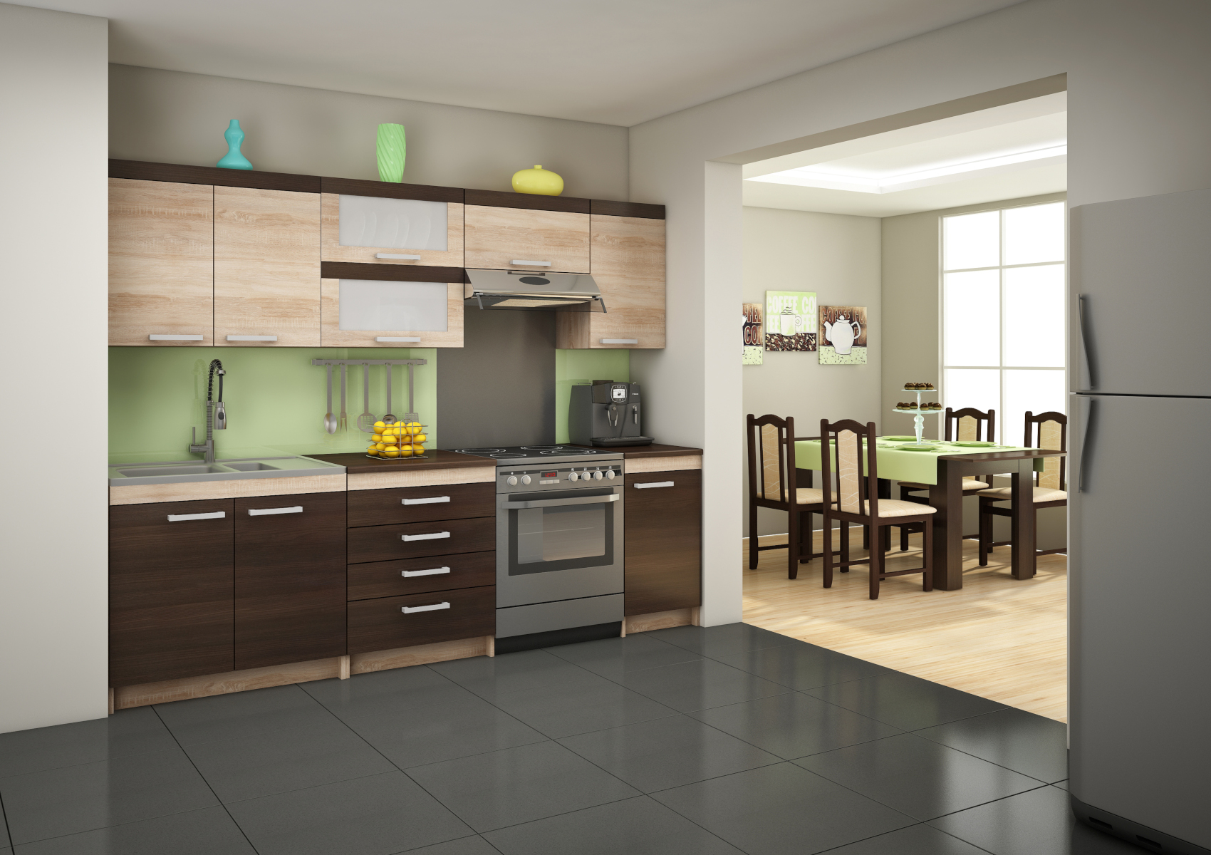 V ceně není zahrnuta pracovní deska. Cena pracovní desky za 1bm je 1392,- Kč. V případě požadavku rozměrů na míru pracovní desky je nutná samostatná kalkulace. Uveďte rozměr v poznámce do objednávky, cena Vám bude potvrzena.
