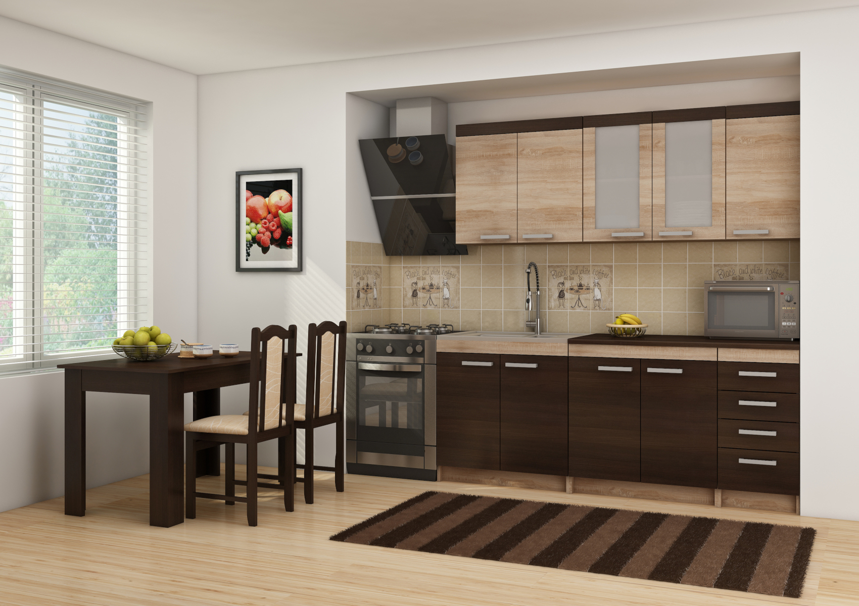 V ceně není zahrnuta pracovní deska. Cena pracovní desky za 1bm je 1392,- Kč. V případě požadavku rozměrů na míru pracovní desky je nutná samostatná kalkulace. Uveďte rozměr v poznámce do objednávky, cena Vám bude potvrzena.