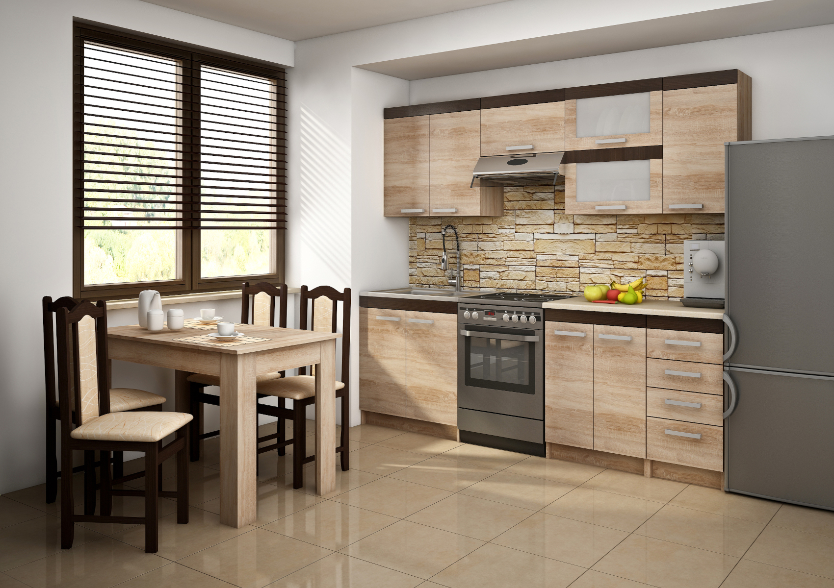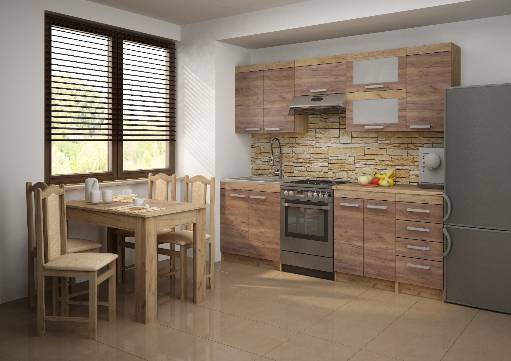V ceně není zahrnuta pracovní deska. Cena pracovní desky za 1bm je 1392,- Kč. V případě požadavku rozměrů na míru pracovní desky je nutná samostatná kalkulace. Uveďte rozměr v poznámce do objednávky, cena Vám bude potvrzena.