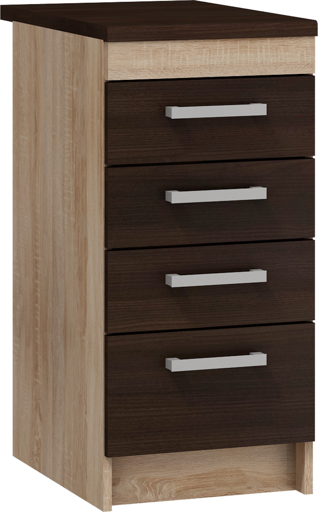 Spodní skříňka Milo S-40/4SZ vás zaujme svým moderním přírodní designem. Je vyrobena z lamina o šířce 16 mm, které vám zaručí kvalitu. Desky mají ABS hranění, které zvyšuje odolnost proti odštípnutí hran. Nabízíme vám několik barevných variant moření.