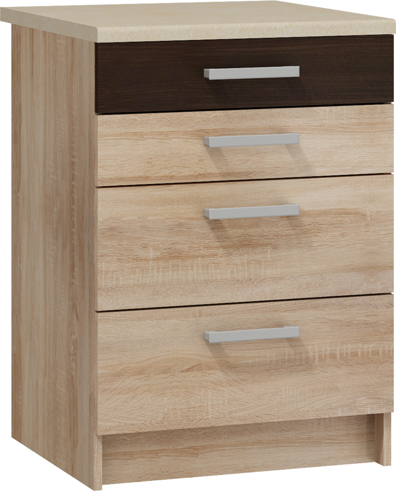 Spodní skříňka S-60/4SZ je vyrobena z LTD 16 mm, skříňka má 4 praktické zásuvky. Výběr z několika barevných variant (korpus / přední plocha / pásek). Dodáváno v demontu.V ceně není zahrnutá pracovní deska. Cena pracovní desky za 1 bm je 1392,- Kč. V případě požadavku rozměrů na míru pracovní desky je nutná samostatná kalkulace, uveďte rozměr v poznámce do objednávky, cena Vám bude potvrzena.