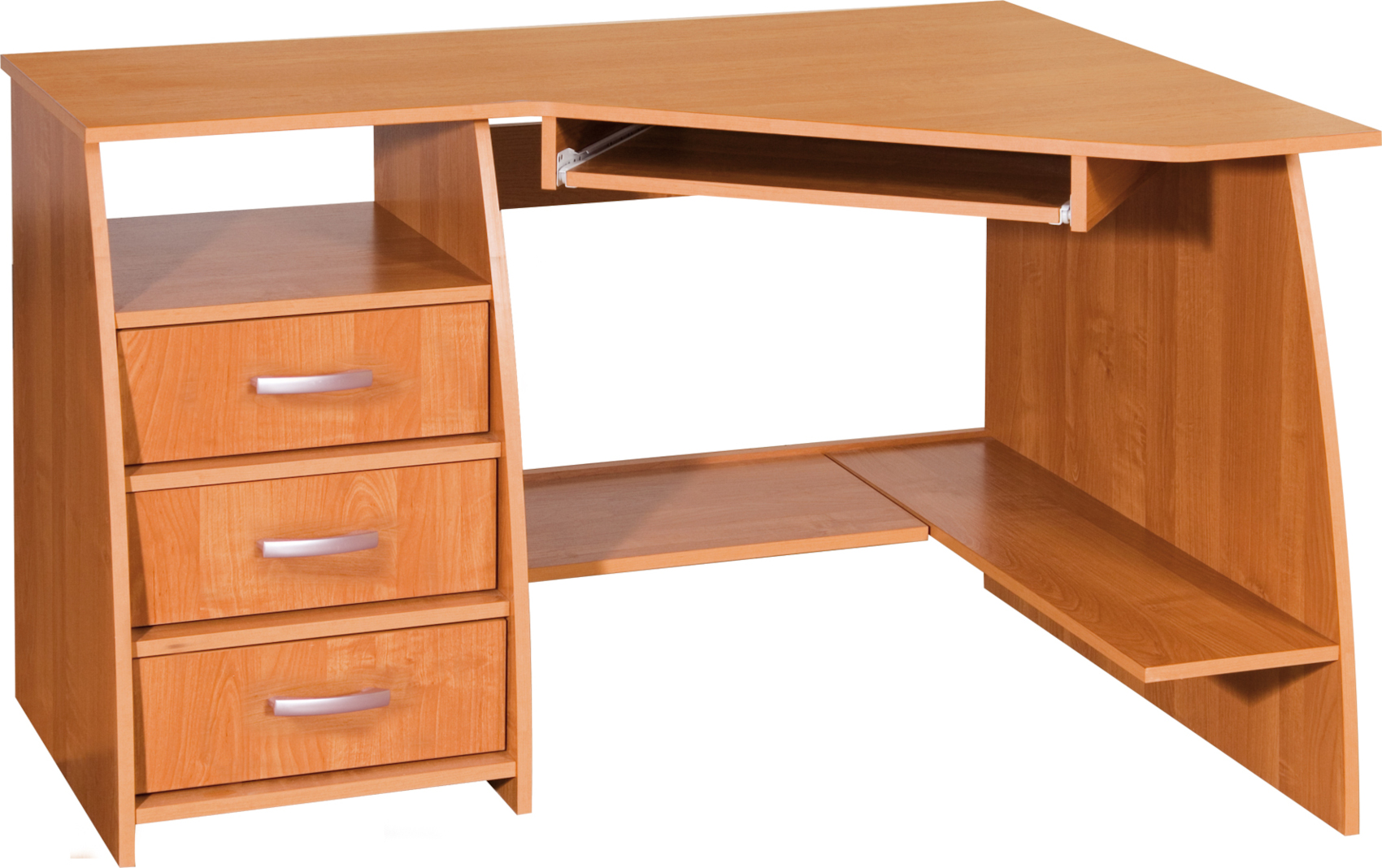 Psací stůl Sevilla 3 je vyroben z lamina o síle 16 mm s 0,6 mm ABS hranou. Kromě tří zásuvek nabízí také výsuv na klávesnici. Provedení stolu se určuje podle umístění skříňky. Na výběr z několika barevných variant. Dodáváme v demontu.