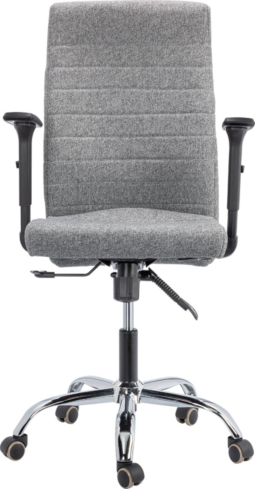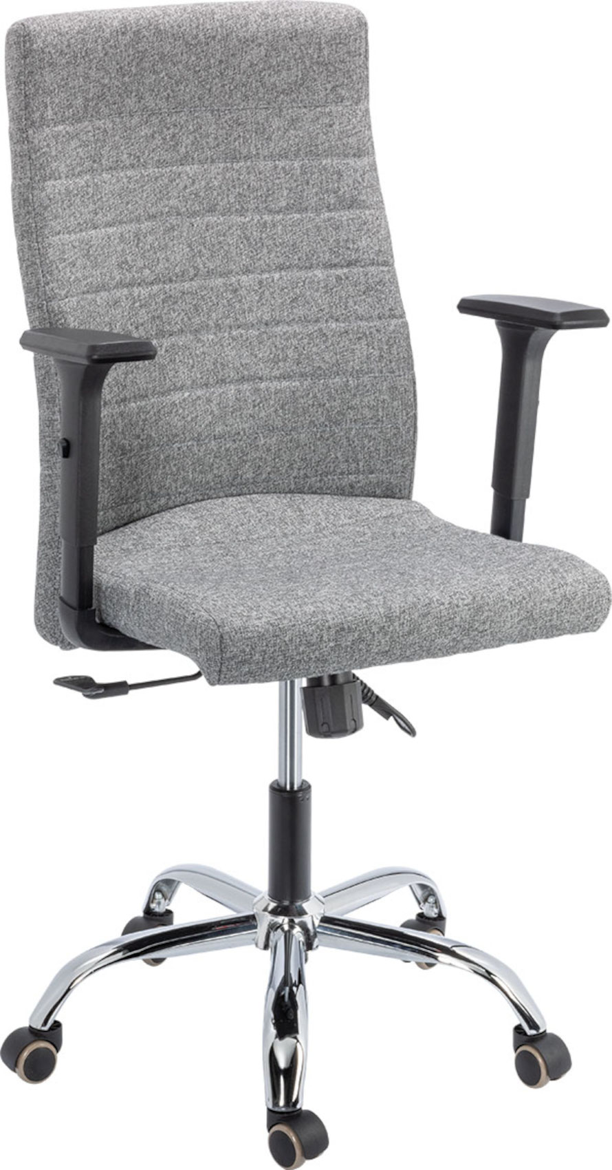 Otočné křeslo Levi vás zaujme svým moderním designem. Je vyrobeno z kovu a očalouněno potahovou látkou. Křeslo má nastavitelné područky, sedadlo i opěradlo, které poskytuje pohodlnou a zdravou oporu zad. Podnož je na gumových kolečkách.