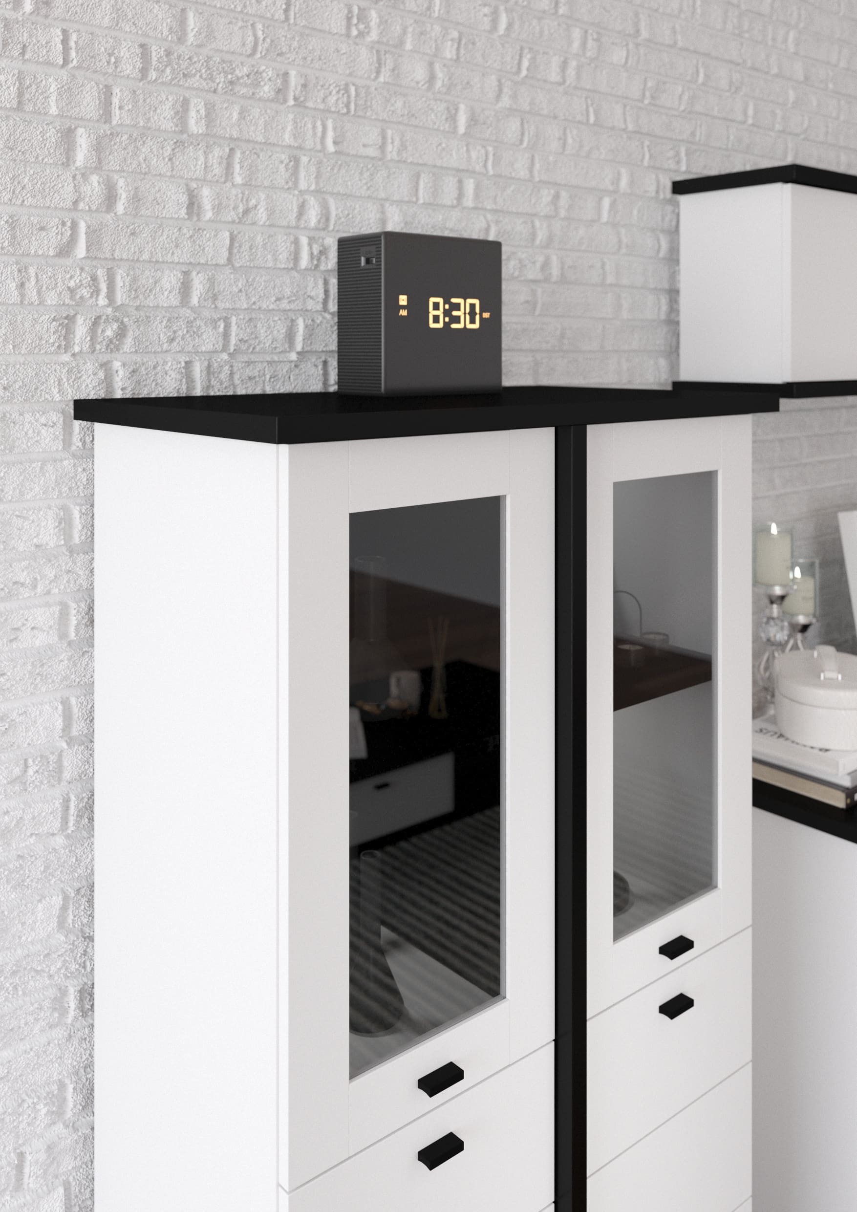 Vitríny mají kouřová skla, která ještě více zdůrazní originální vzhled systému. Černou barvou vynikají i úchyty, jež doplňují barevné kombinace reflektující moderní trendy v bydlení. S kolekcí Cross nemůžete šlápnout vedle!
