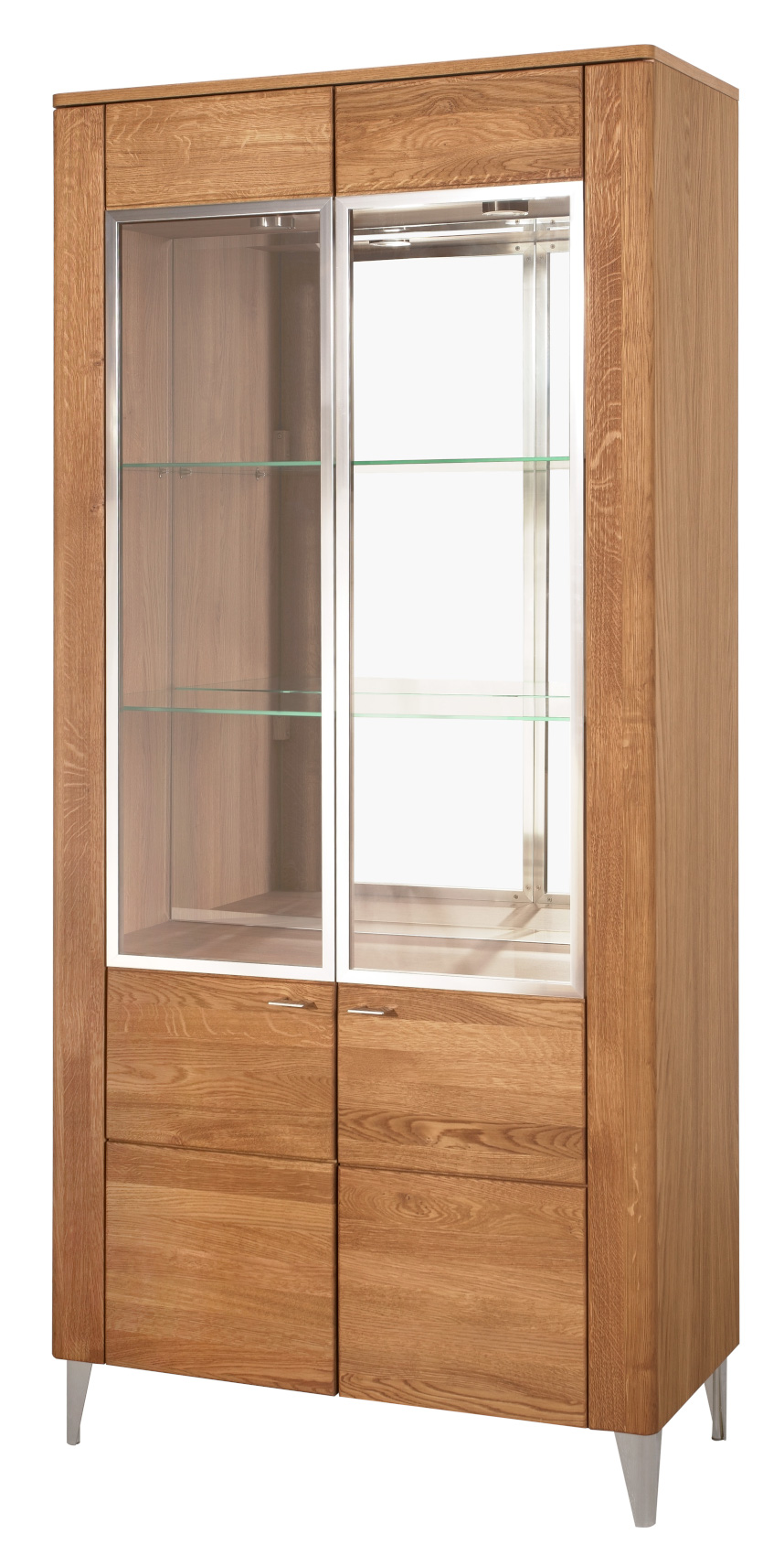 Za příplatek si můžete zvolit variantu s LED osvětlením skleněných polic, které dodá nábytku nádech luxusu a navodí příjemnou večerní atmosféru.