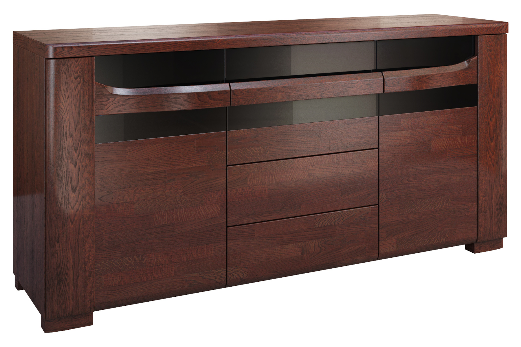 Luxusní jídelna Riva je vyrobena z masivního dubového dřeva, přírodní dubové dýhy s černými lakovanými prvky a detaily z černého skla Lacobel. Některé z komodit jsou očalouněné černou ekologickou kůží. Jídelna je sestavena z prvků systémového nábytku Riva, ze kterých si můžete libovolně vytvořit prostor dle vaší fantazie.