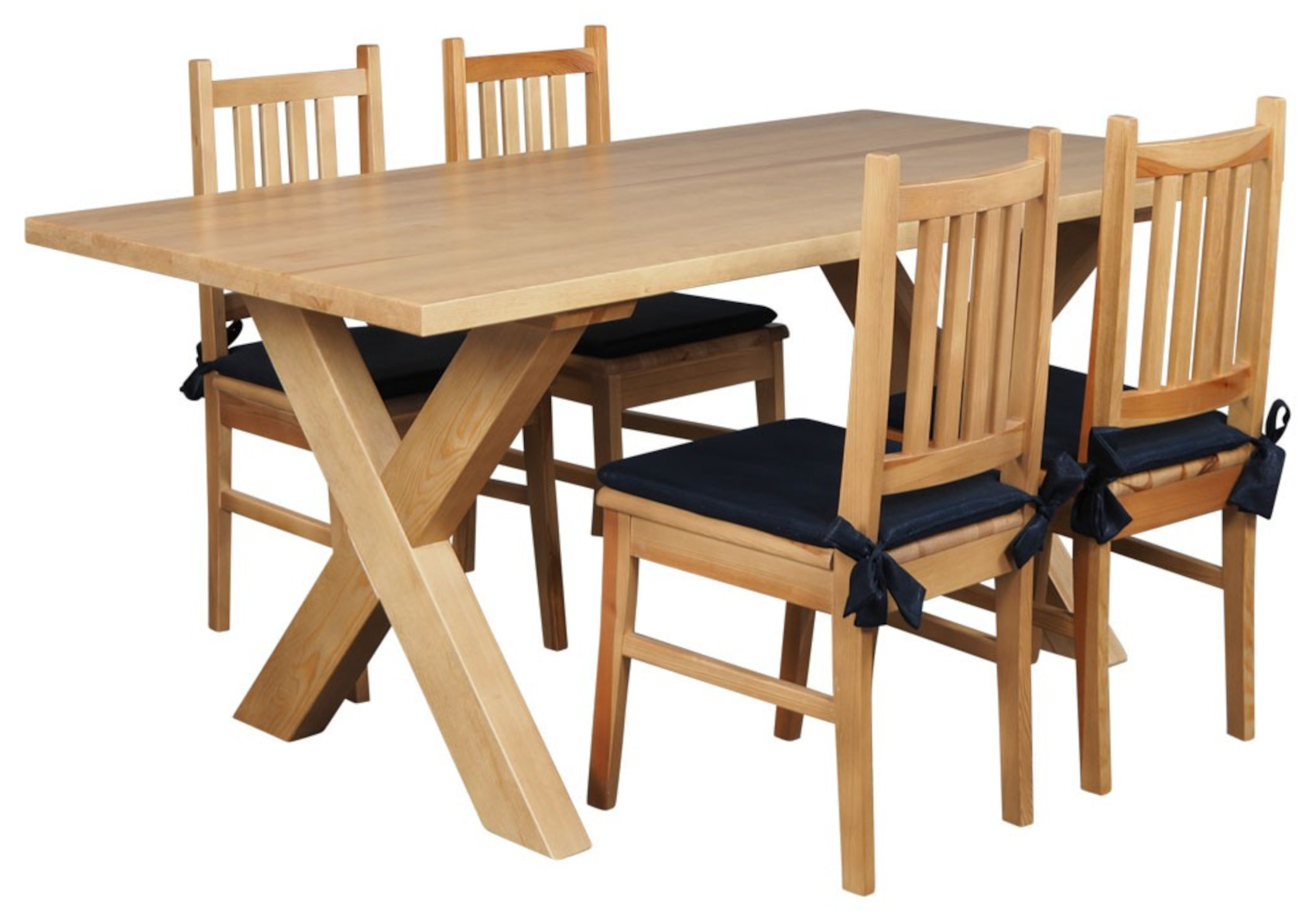 Jídelní sestava vás zaujme svým jednoduchým přírodním designem s viditelnou strukturou dřevěných lét. Je vyrobena z masivního borovicového dřeva, které vám zaručí kvalitu, odolnost a stabilitu. Součástí stolu jsou jedinečně tvarované nohy, které vám navodí nádech elegance a provzdušní váš interiér. Na výběr máte z několika odstínu moření dřeva.
