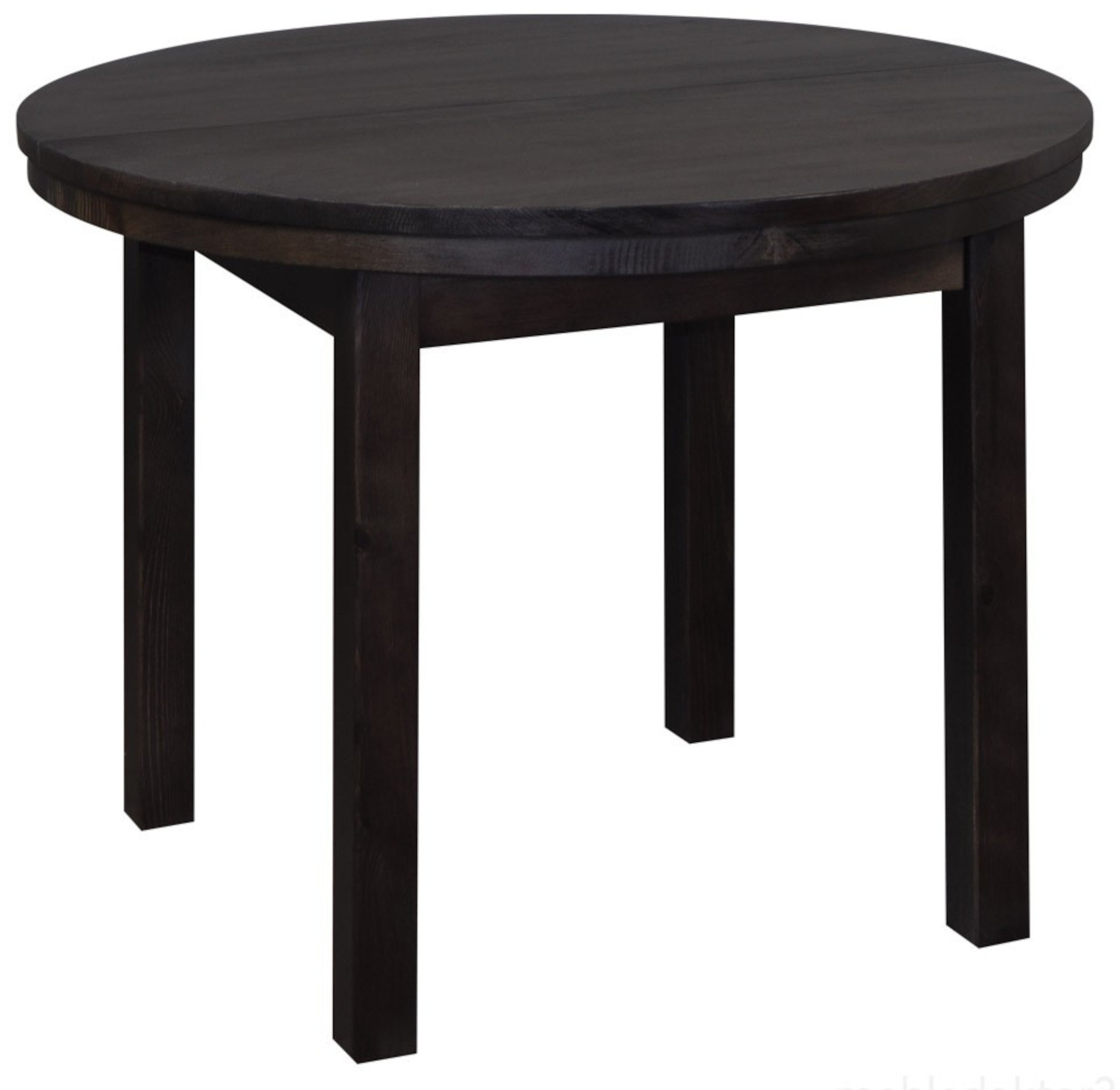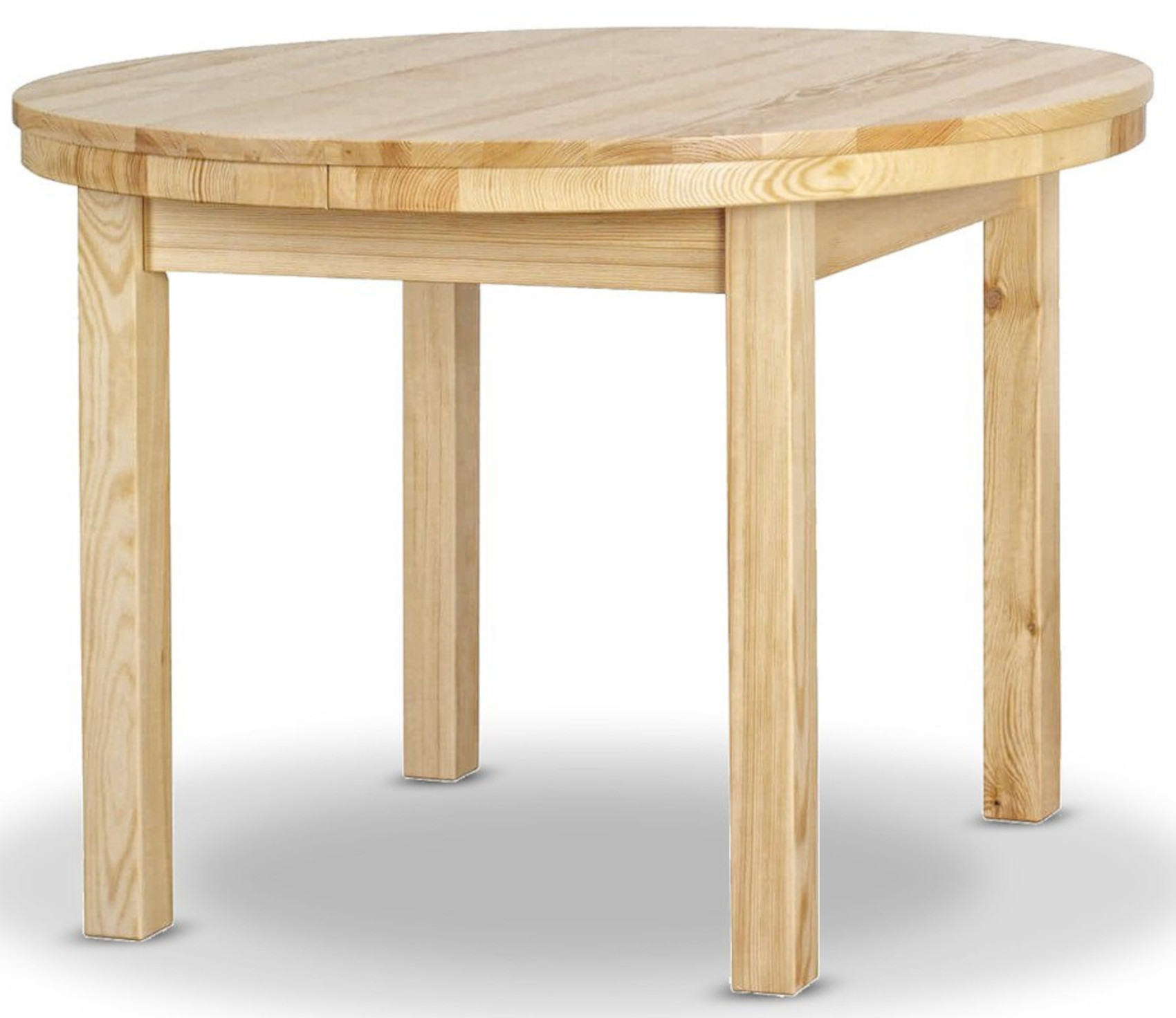 Kulatý jídelní stůl Modern s rozkladem vás zaujme svým jednoduchým přírodním designem s viditelnou strukturou dřevěných lét. Horní deska i nohy jsou vyrobeny z masivního borovicového dřeva, které vám zaručí kvalitu, odolnost a stabilitu. Na výběr máte z několika odstínu moření dřeva.