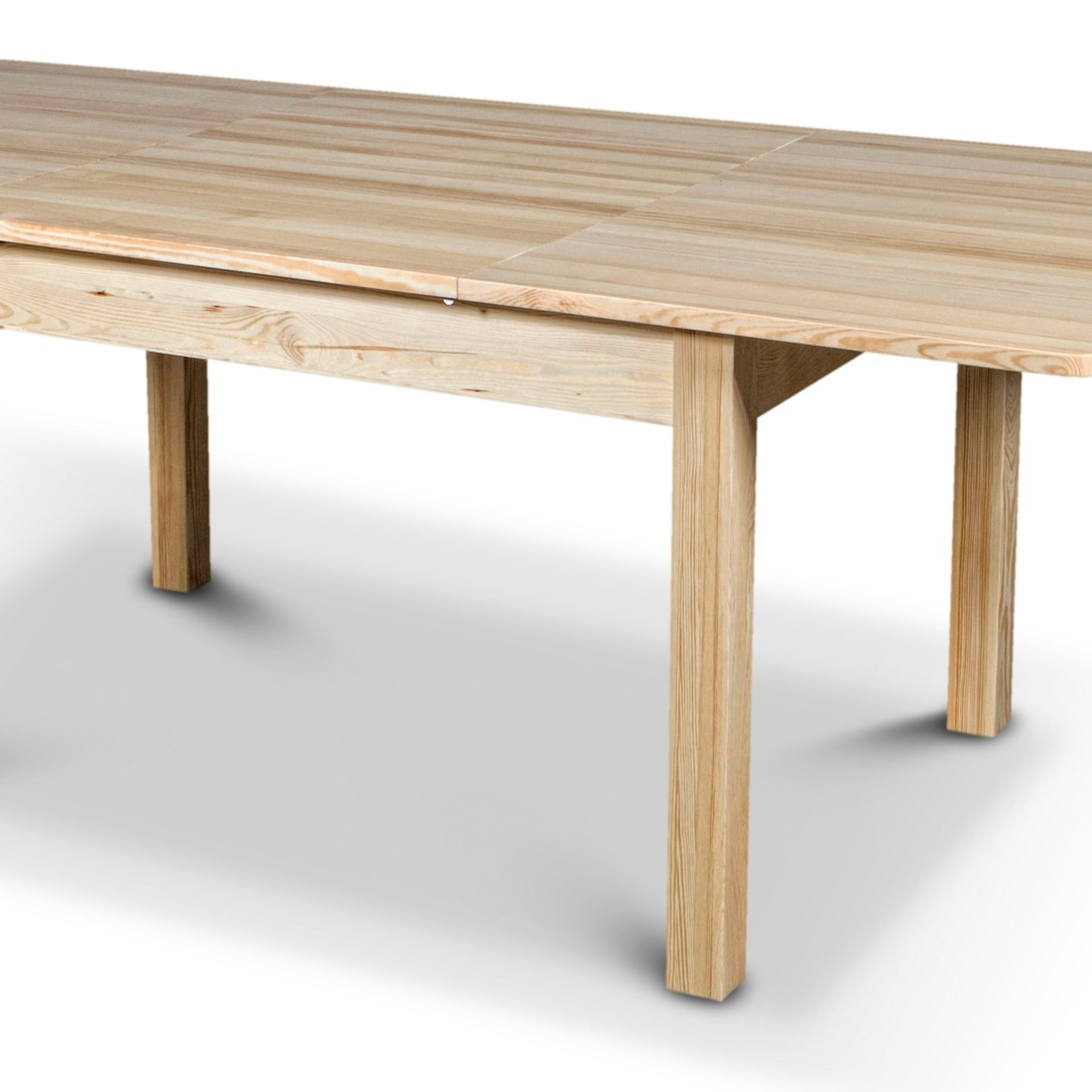 Rozkládací jídelní stůl Madura vás zaujme svým jednoduchým přírodním designem s viditelnou strukturou dřevěných lét. Horní deska i nohy jsou vyrobeny z masivního borovicového dřeva, které vám zaručí kvalitu, odolnost a stabilitu. Na výběr máte z několika odstínu moření dřeva.