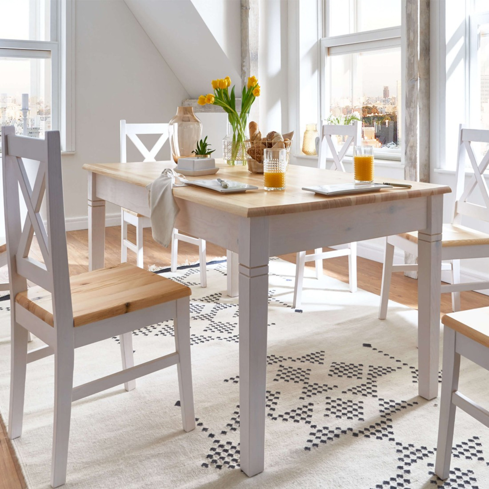 Jídelní stůl Lida vás zaujme svým jednoduchým přírodním designem s viditelnou strukturou dřevěných lét. Je vyroben z masivního borovicového dřeva, které vám zaručí kvalitu, odolnost a stabilitu. Součástí stolu jsou vysoké nohy s vyřezávanými prvky. Na výběr máte z několika odstínu moření dřeva.