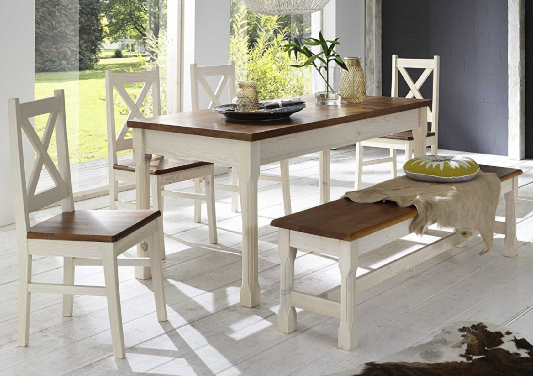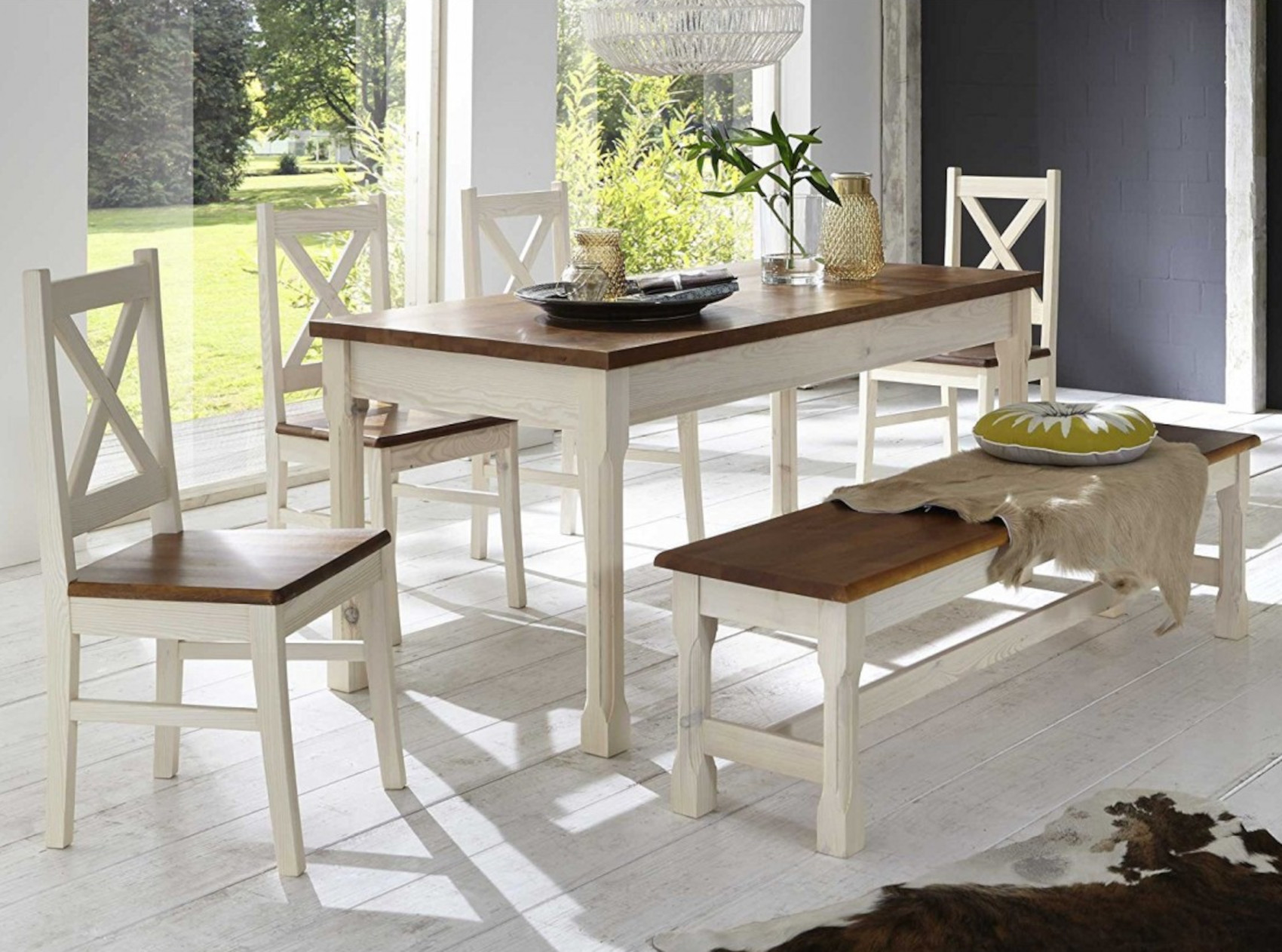 Jídelní stůl Monaco vás zaujme svým jednoduchým přírodním designem s viditelnou strukturou dřevěných lét. Je vyroben z masivního borovicového dřeva, které vám zaručí kvalitu, odolnost a stabilitu. Součástí stolu jsou vysoké nohy, které dodají nábytku nádech elegance a francouzského stylu Provence. Na výběr máte z několika odstínu moření dřeva.