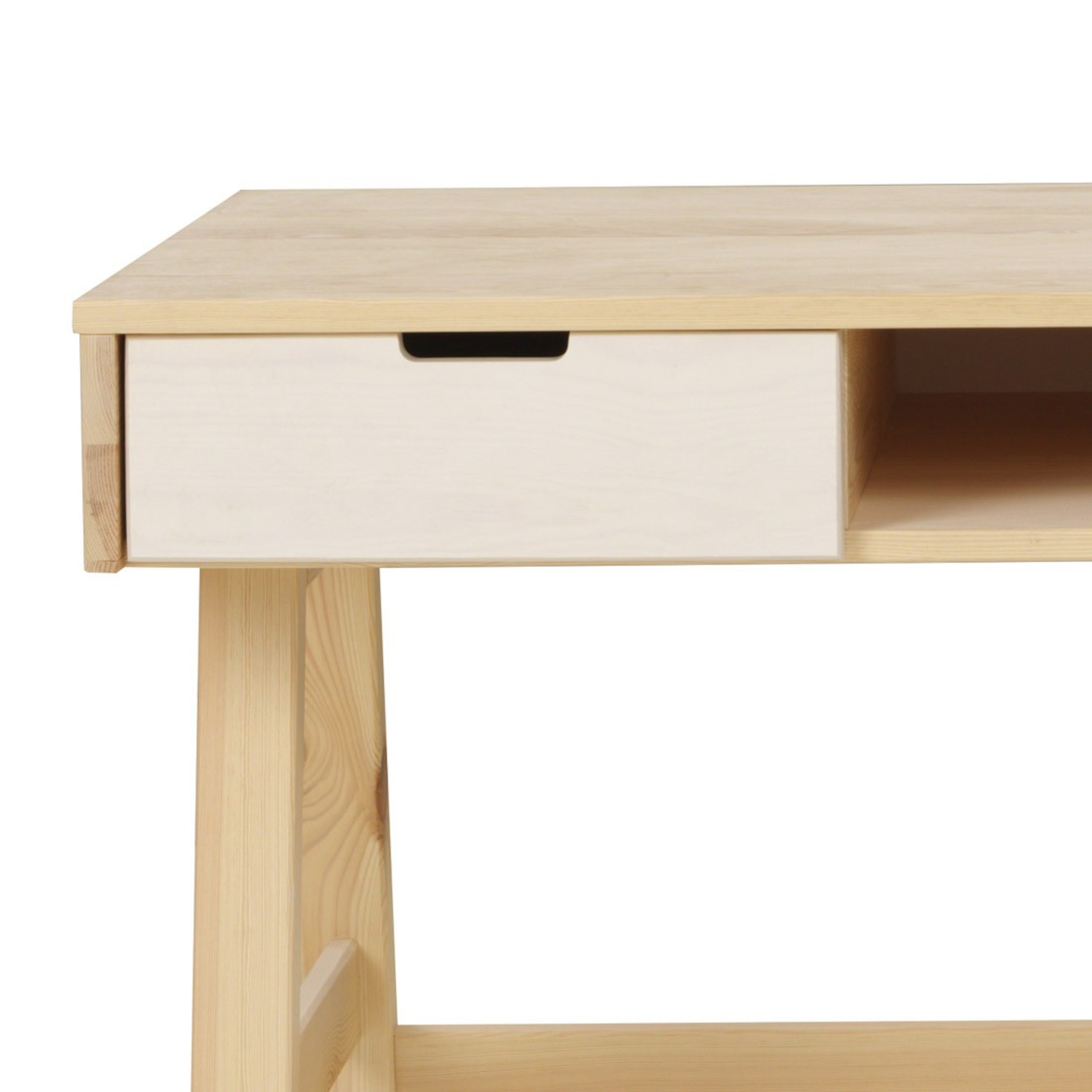 Pod horní deskou jsou 2 zásuvky na kovových pojezdech se zabudovaným systémem tichého dovírání. Mezi zásuvkami je otevřená nika k uložení dokumentů, knih nebo časopisů.