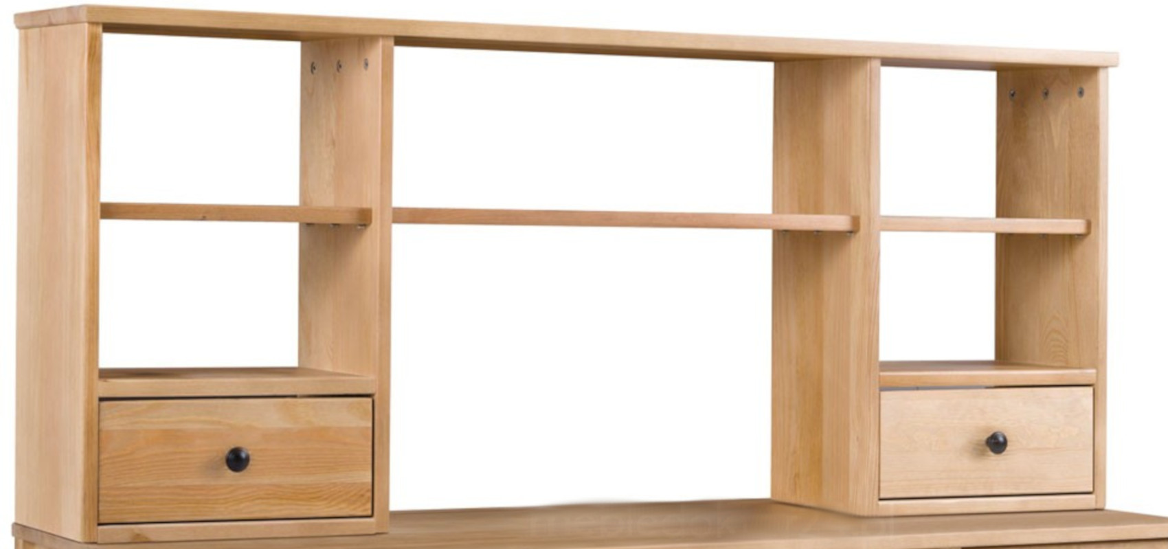 Nadstavba má 3 dřevěné police k vystavení oblíbených knih, dekorací a rámečků s fotografiemi. Ve spodní části jsou 2 malé zásuvky na kovových pojezdech se systémem tichého dovírání.