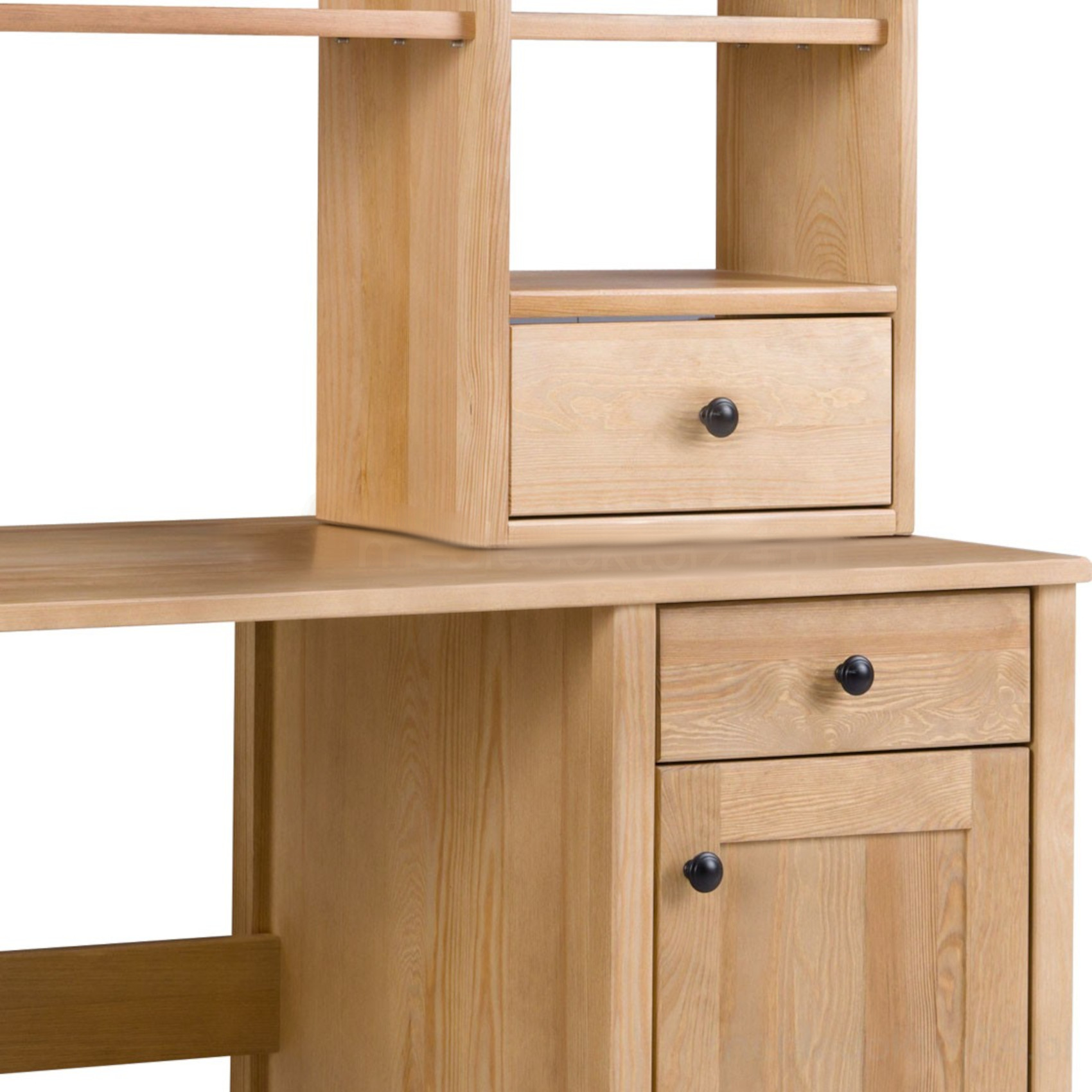 Nadstavba k psacímu stolu Prestige vás zaujme svým elegantním přírodním designem s viditelnou strukturou dřevěných lét. Je vyrobena z masivního borovicového dřeva, které vám zaručí kvalitu, odolnost a stabilitu. Součástí jsou kulaté kovové úchyty, které dodají nábytku nádech provensálského stylu a provzdušní váš interiér. Na výběr máte z několika variant odstínů moření.