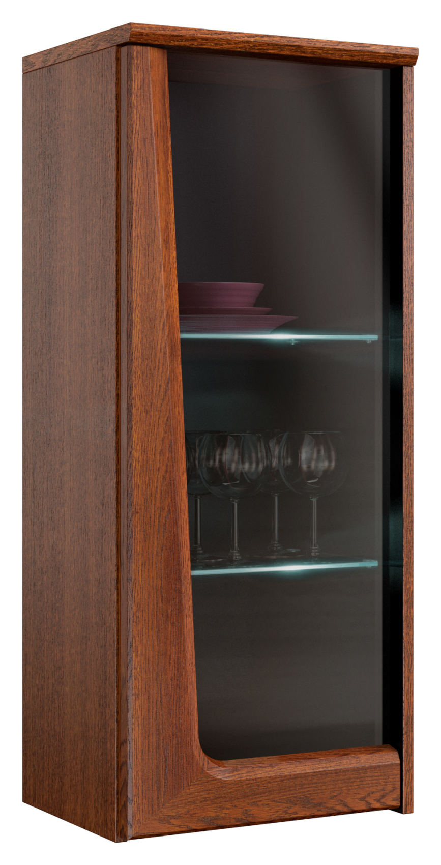 - Závěsná vitrína Maganda 1DS s osvětlením (2ks)*: šířka 43 cm, hloubka 36 cm, výška 103 cm