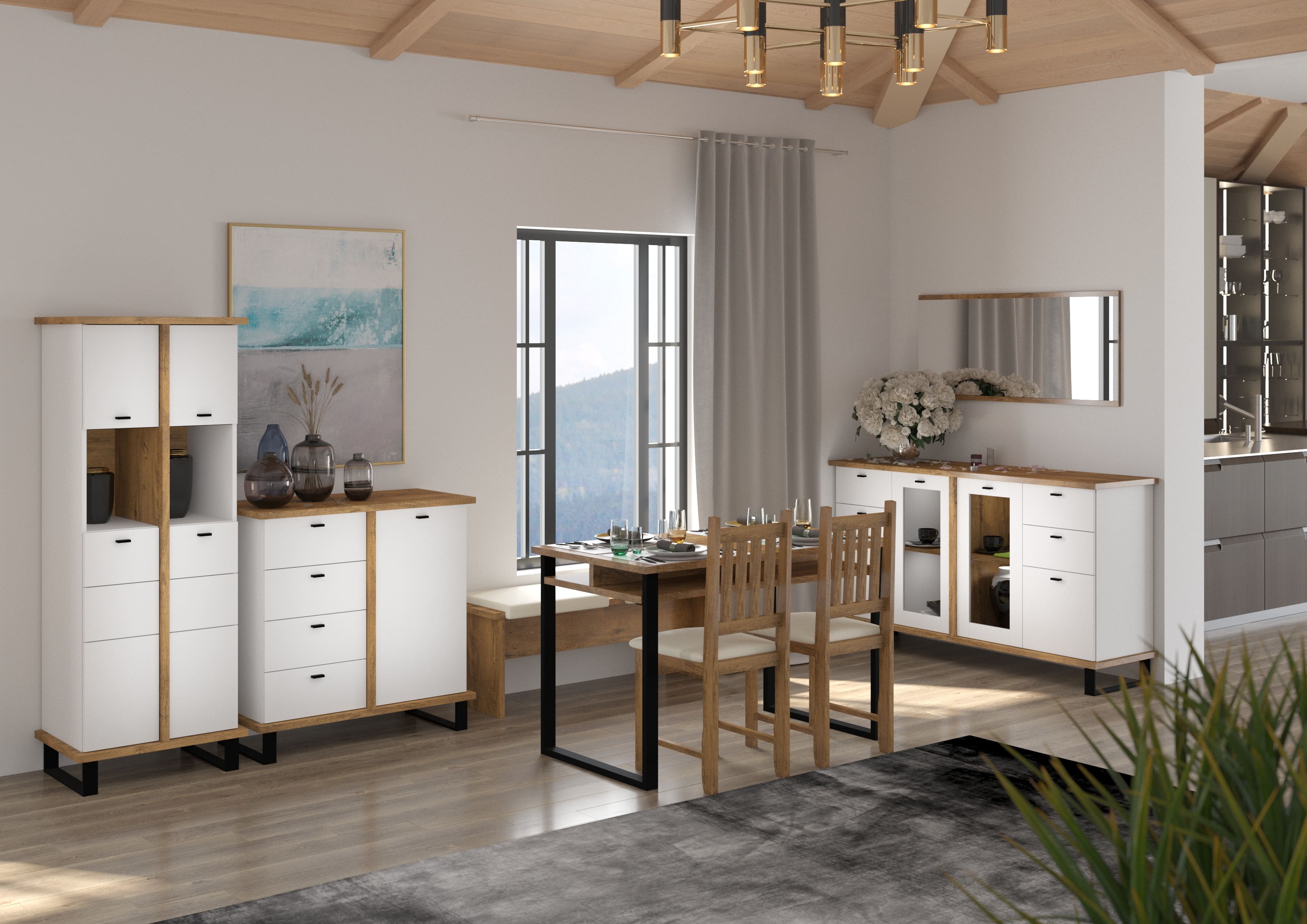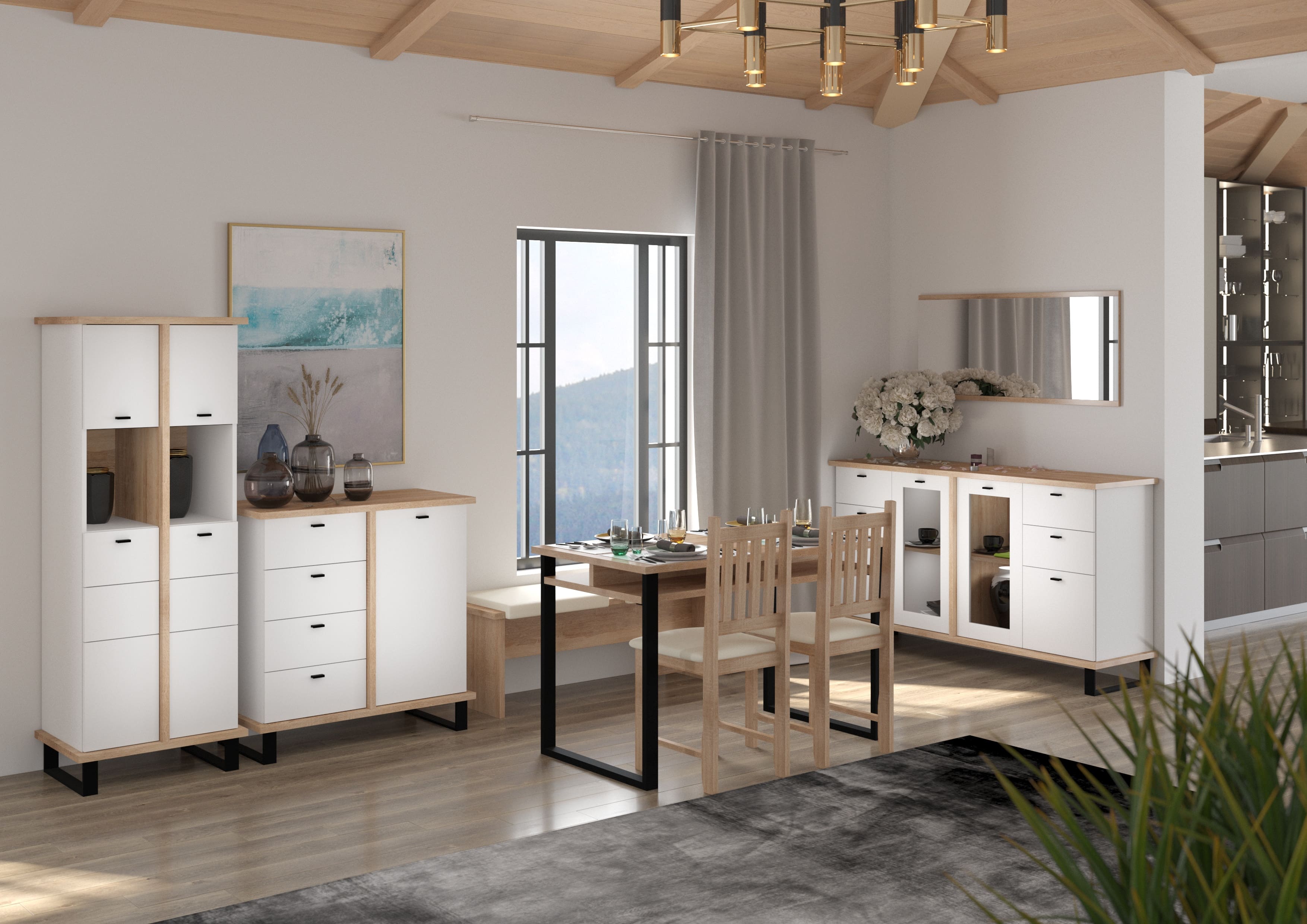 Jídelnu vám dodáme v demontu. Jednotlivé části sestavy si můžete také objednat samostatně, či je zkombinovat s jinými prvky kolekce Cross a vytvořit si tak jídelní kout podle svých preferencí.
