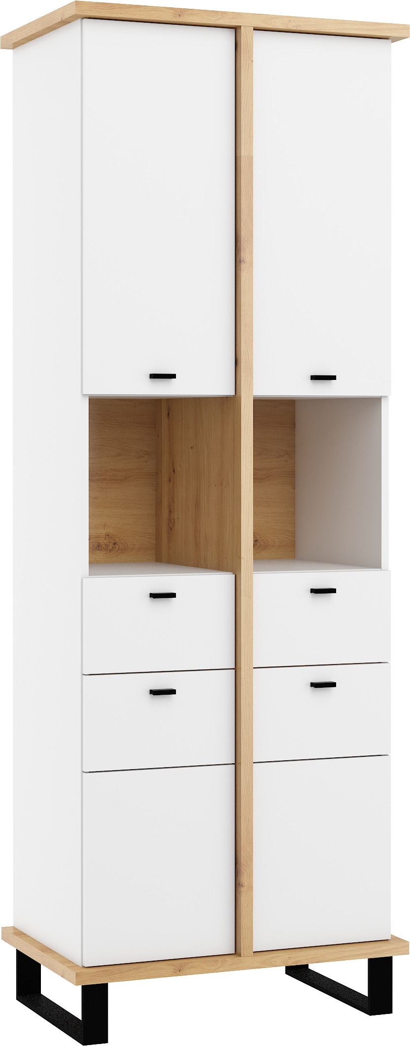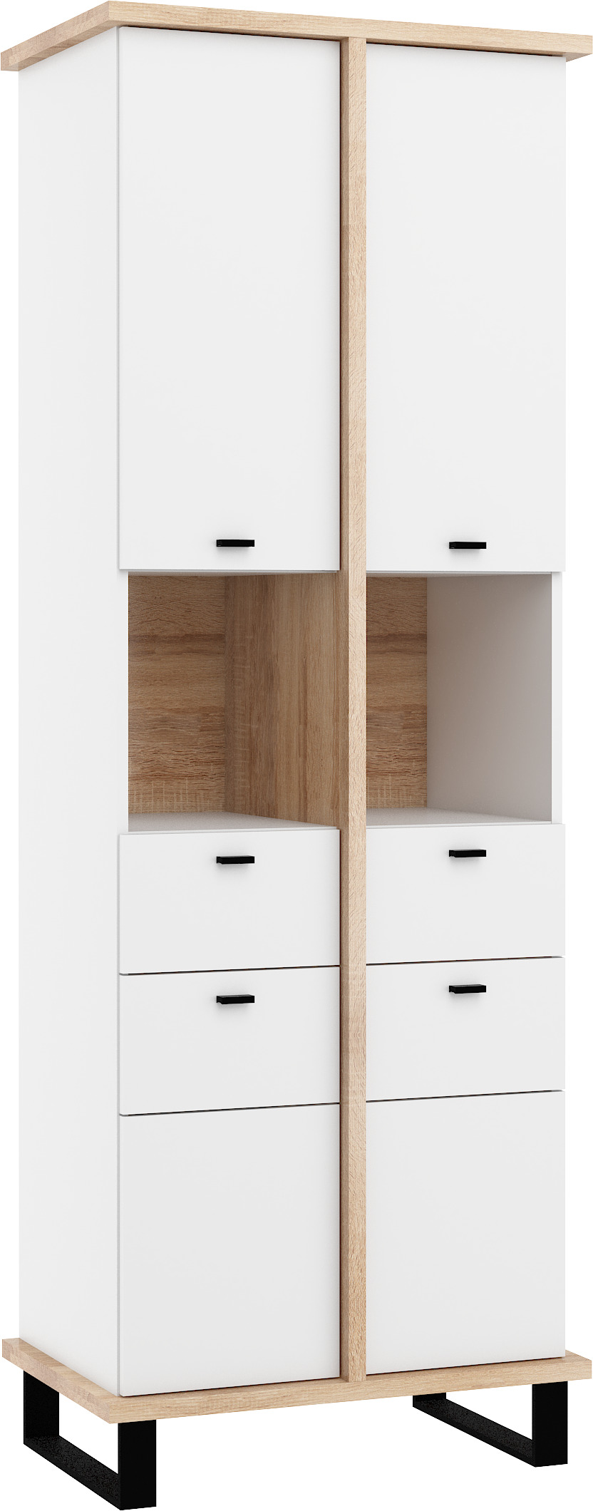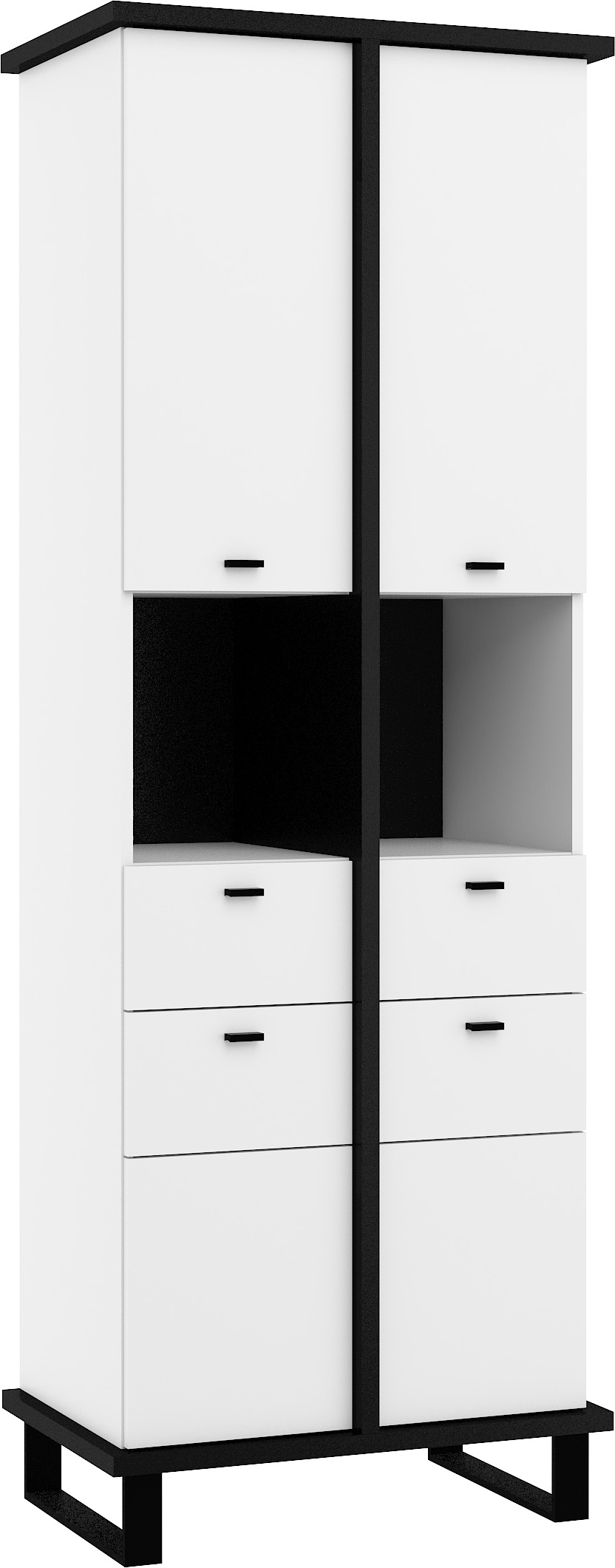 Skříňka Cross 18 disponuje 2 zásuvkami a 4 skříňkami s poličkou uvnitř. Doporučené zatížení polic je max 5 kg. Nožky jsou vysoké 12 cm.