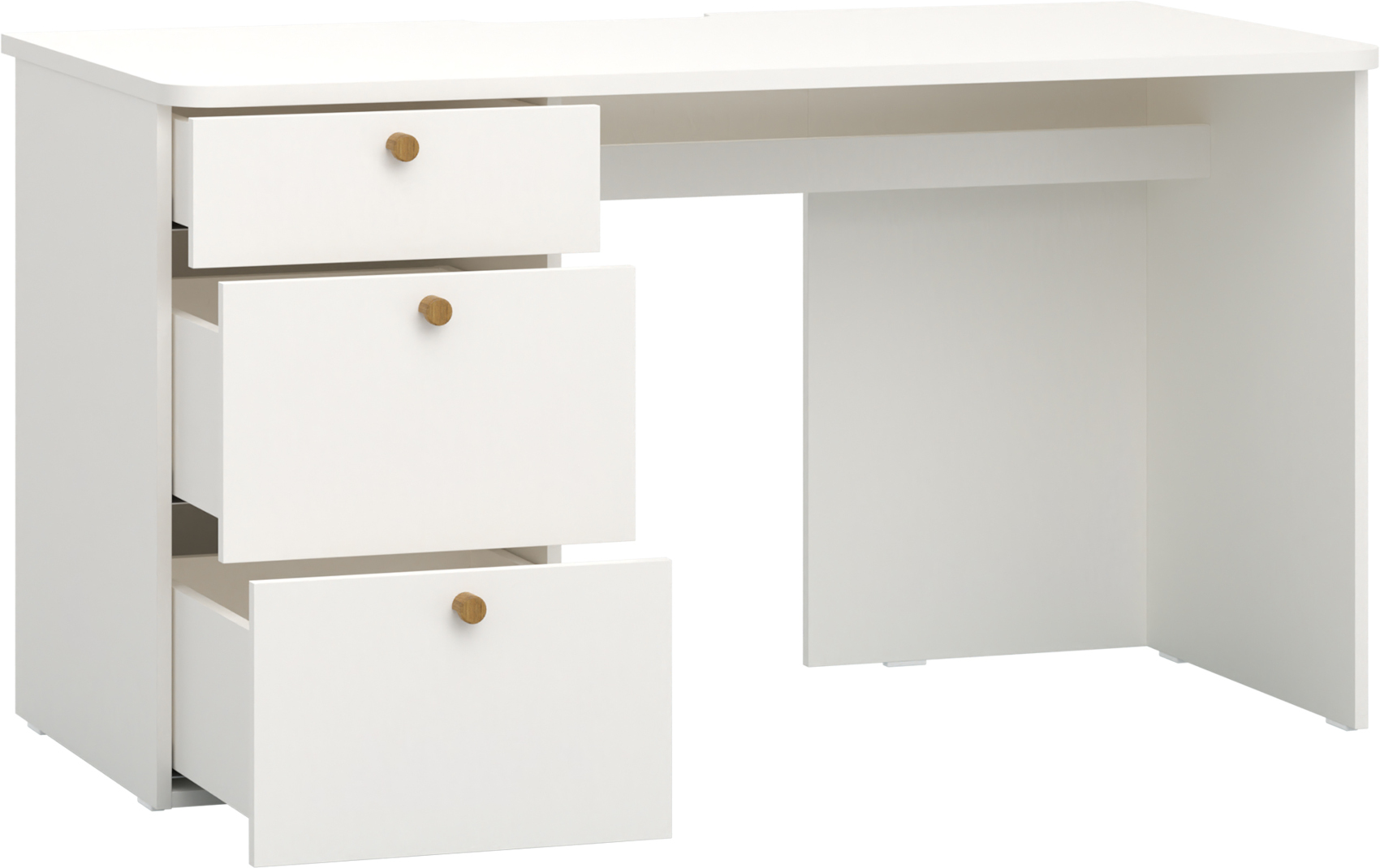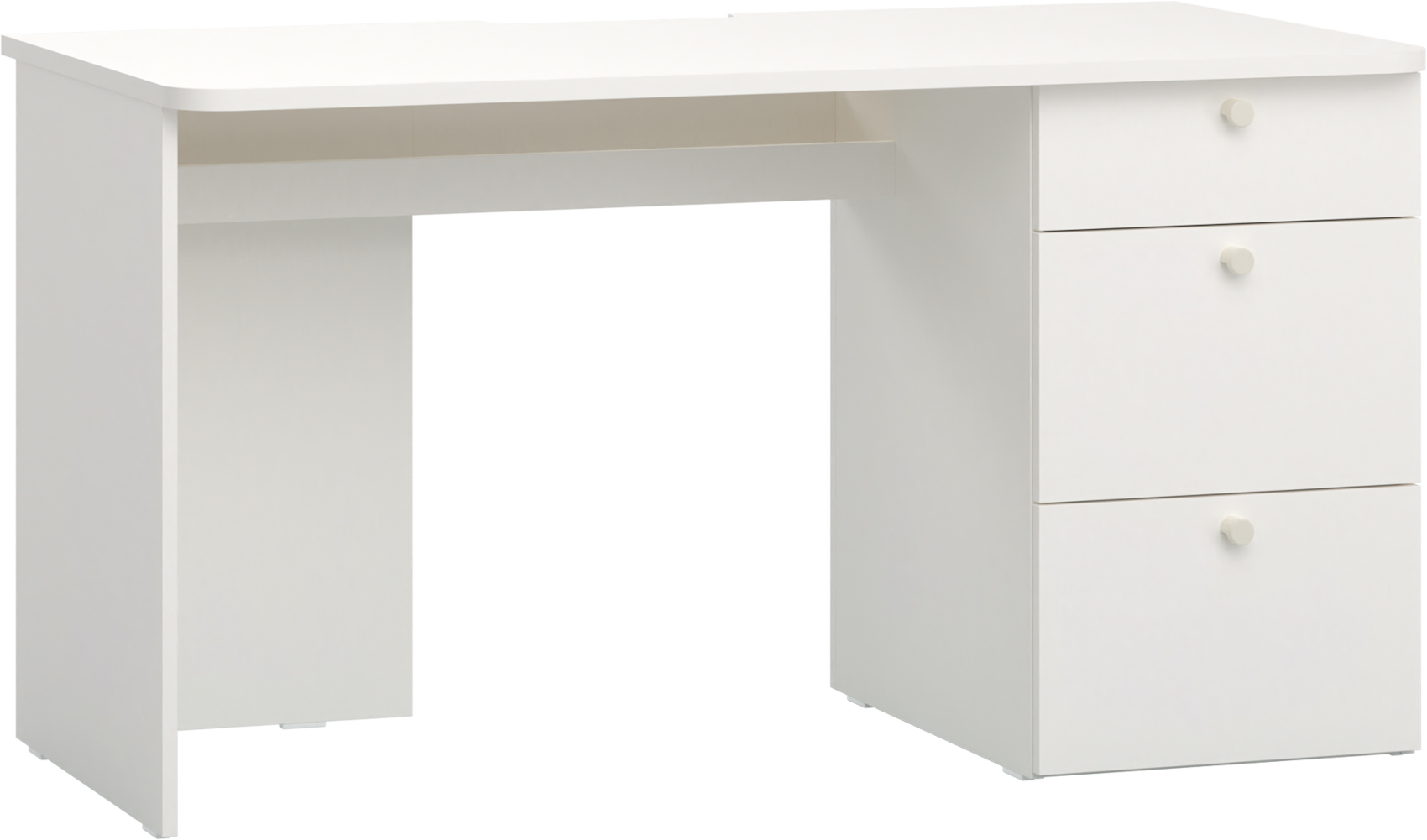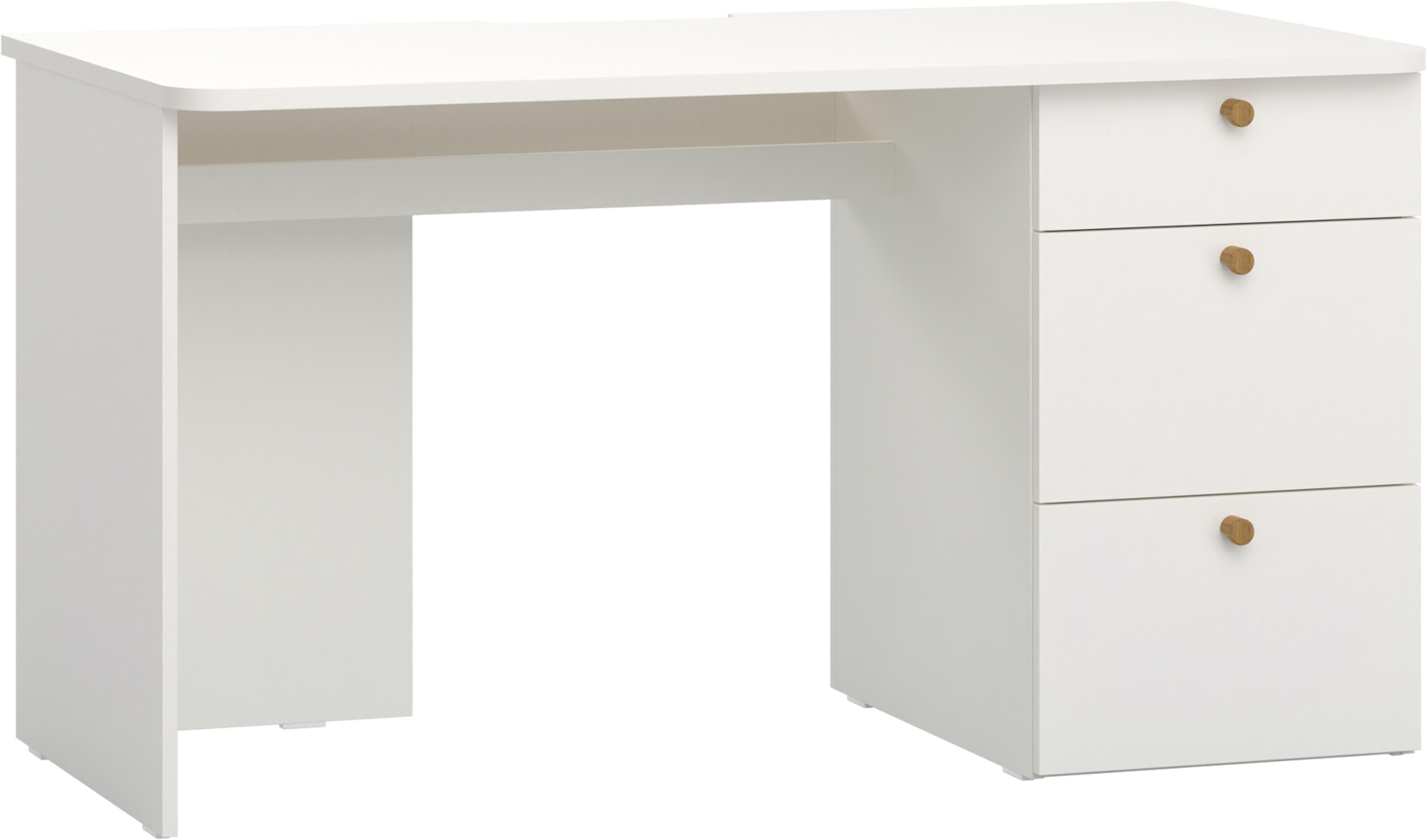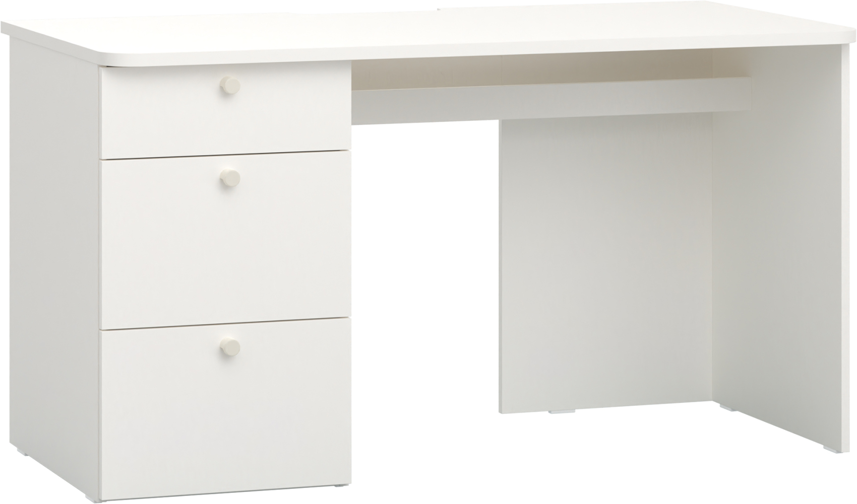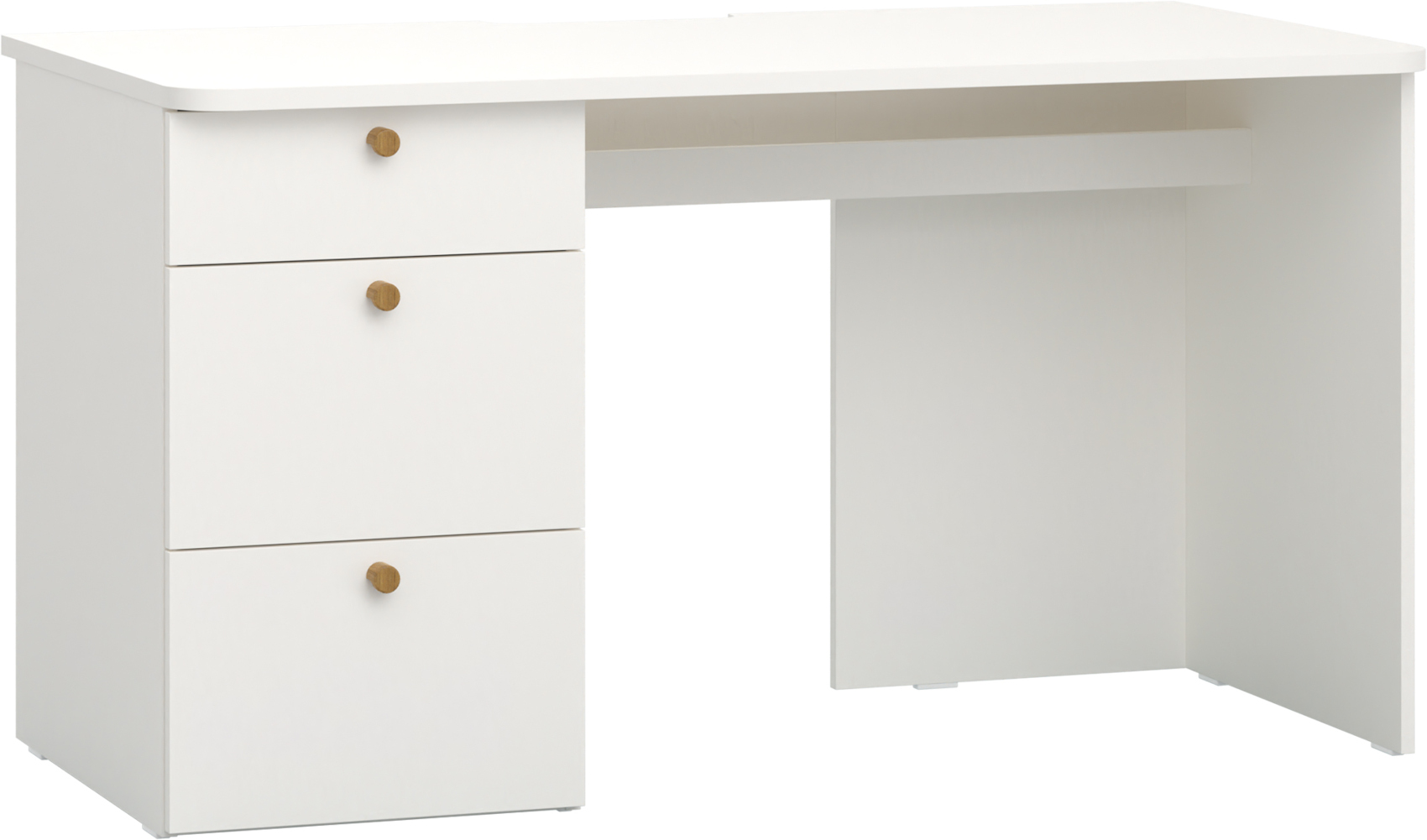 Psací stůl Reli 140 vás zaujme svým jednoduchým designem s moderními prvky v alabastrově bílém odstínu. Je vyroben z kvalitního lamina o síle 16 mm a 22 mm, která vám zaručí odolnost vůči poškození. Spodní část zásuvek je z dřevovláknité desky. Úchyty jsou z přírodního bukového dřeva a můžete si vybrat ze 2 odstínů - přírodní dub nebo bílé. Nabízíme 2 varianty stolu - pravé či levé provedení.