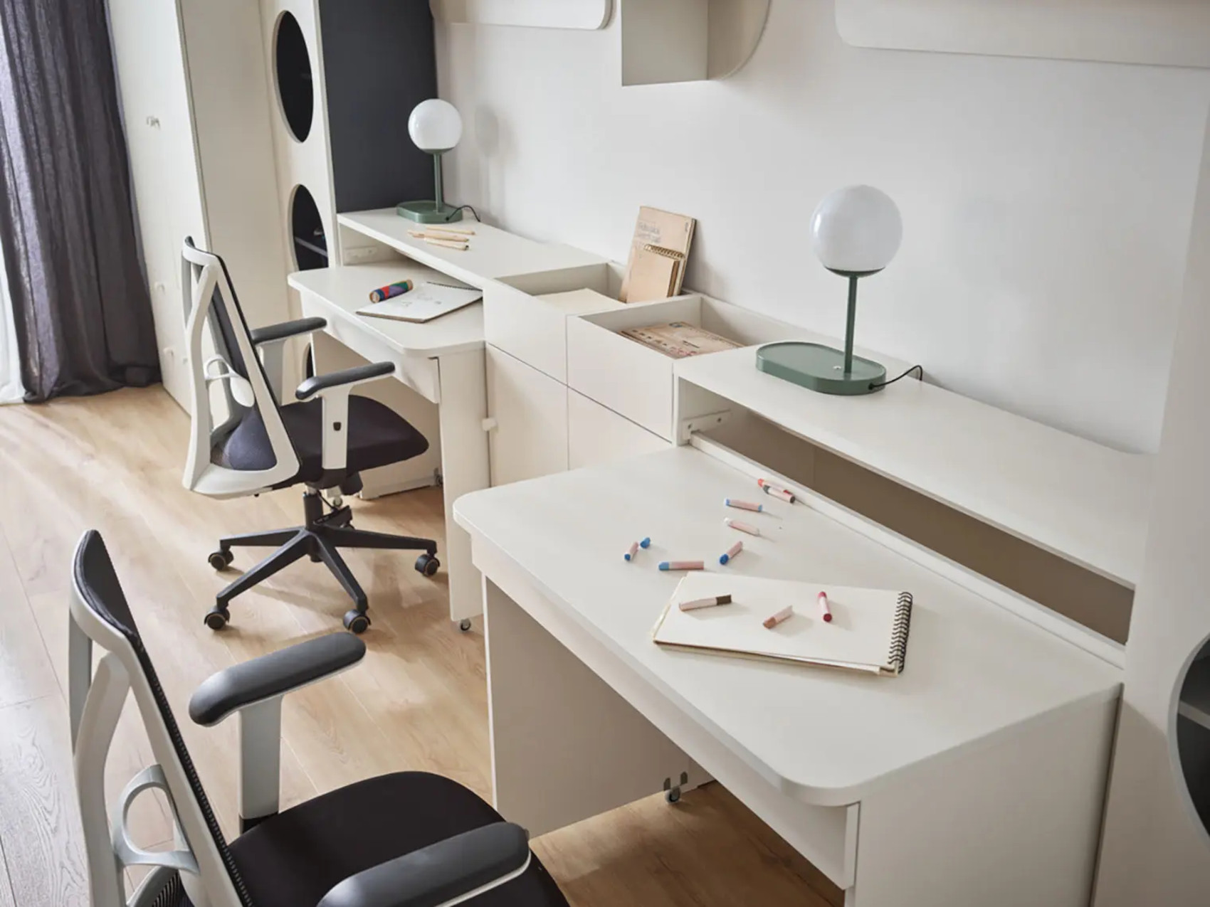 Součástí stolu je prostorná zásuvka na kovových pojezdech se zabudovaným systémem tichého dovírání. Zásuvku můžete využít k uložení různých dokumentů či psacích potřeb.