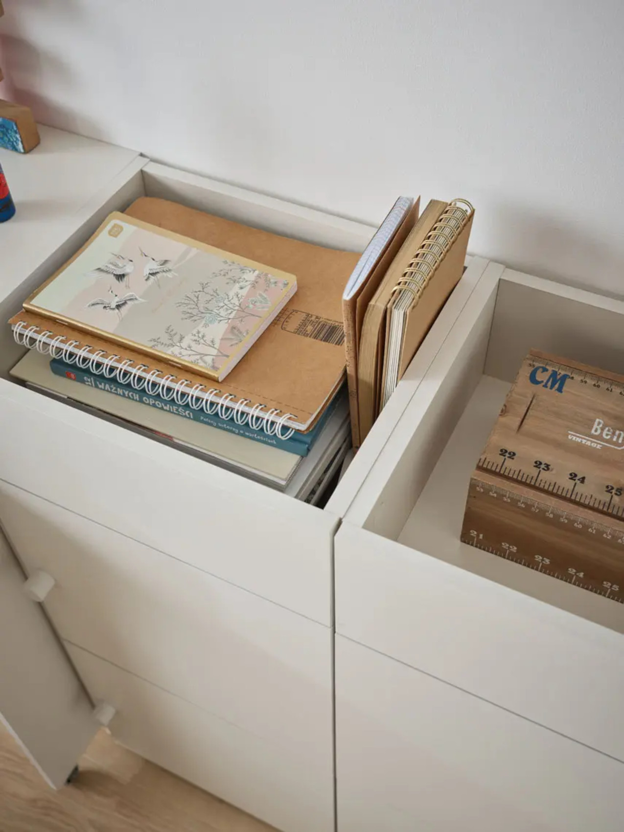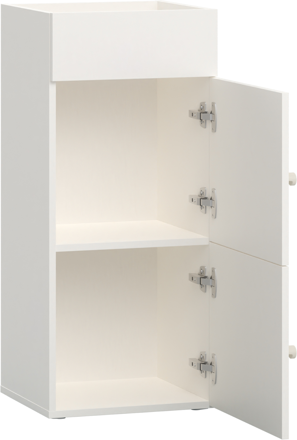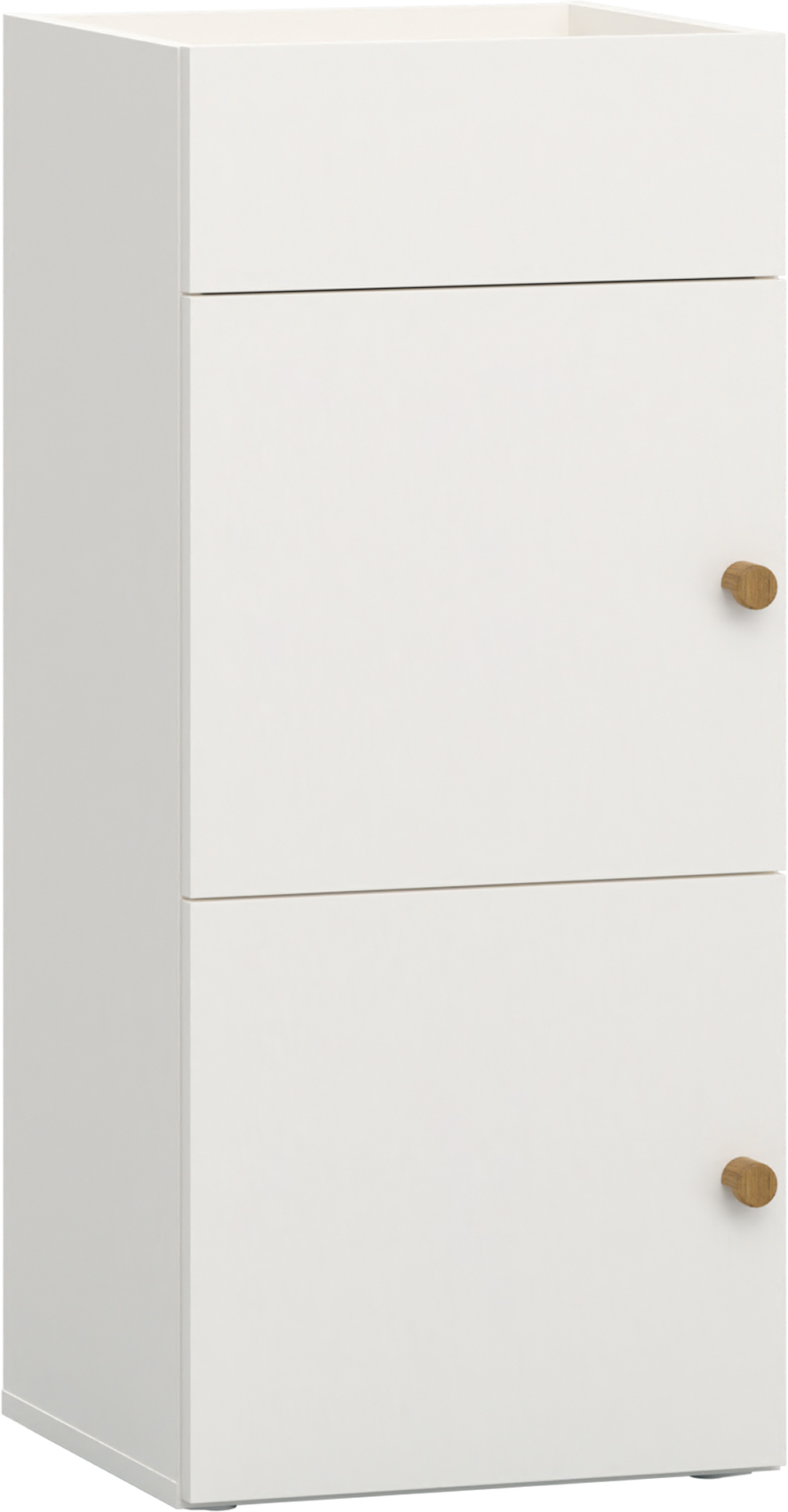 Součástí jsou 2 plná dvířka a v horní části otevřený prostor k odložení různých nezbytností či dekorací. Skříňku můžete dokoupit k vysouvacímu psacímu stolu Reli a rozšířit tak úložný prostor.