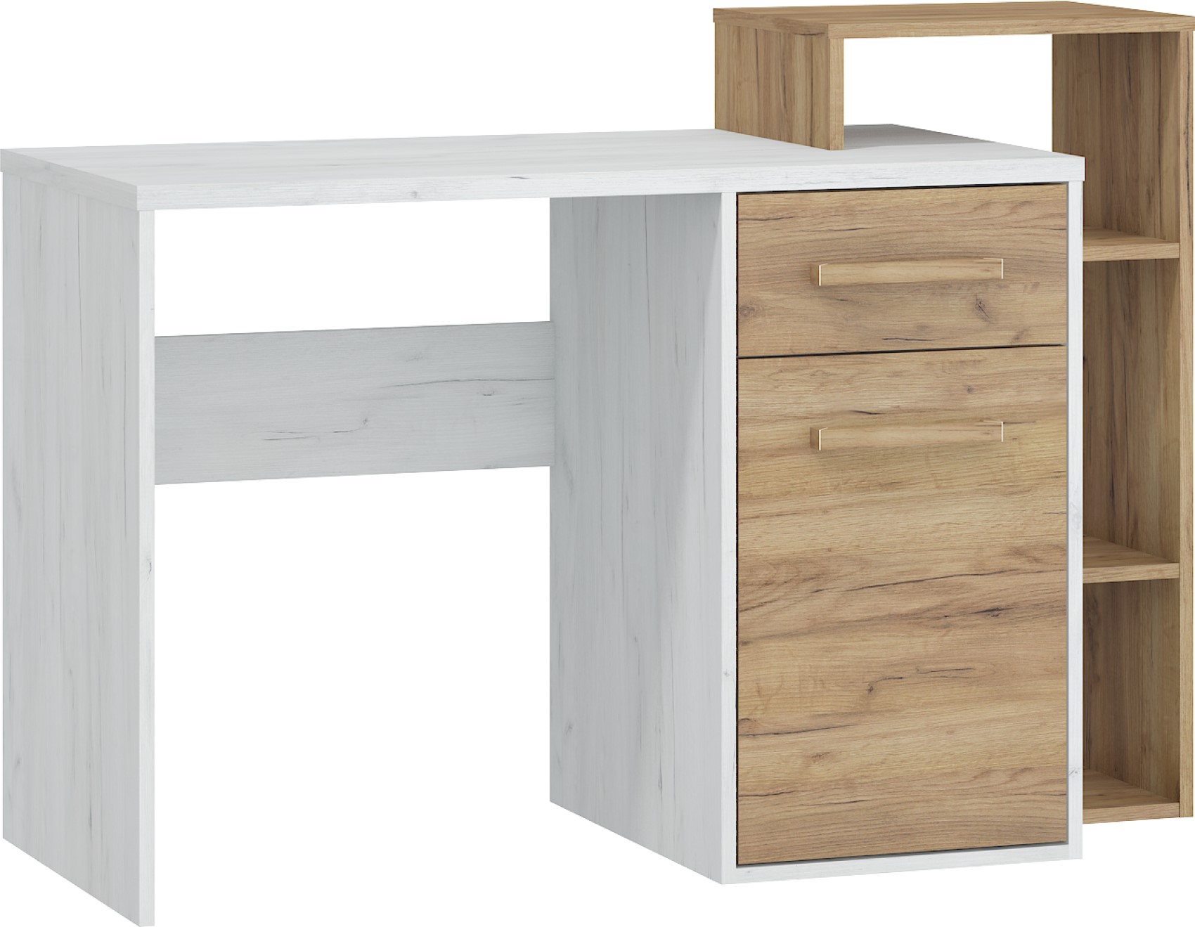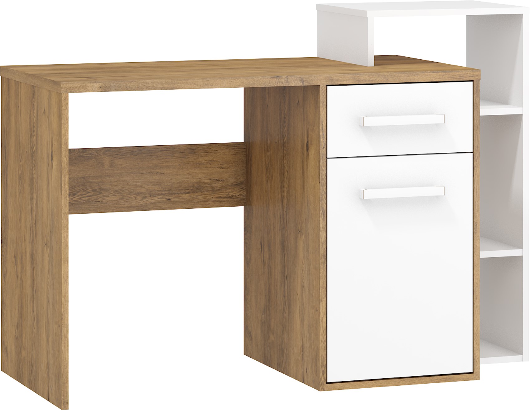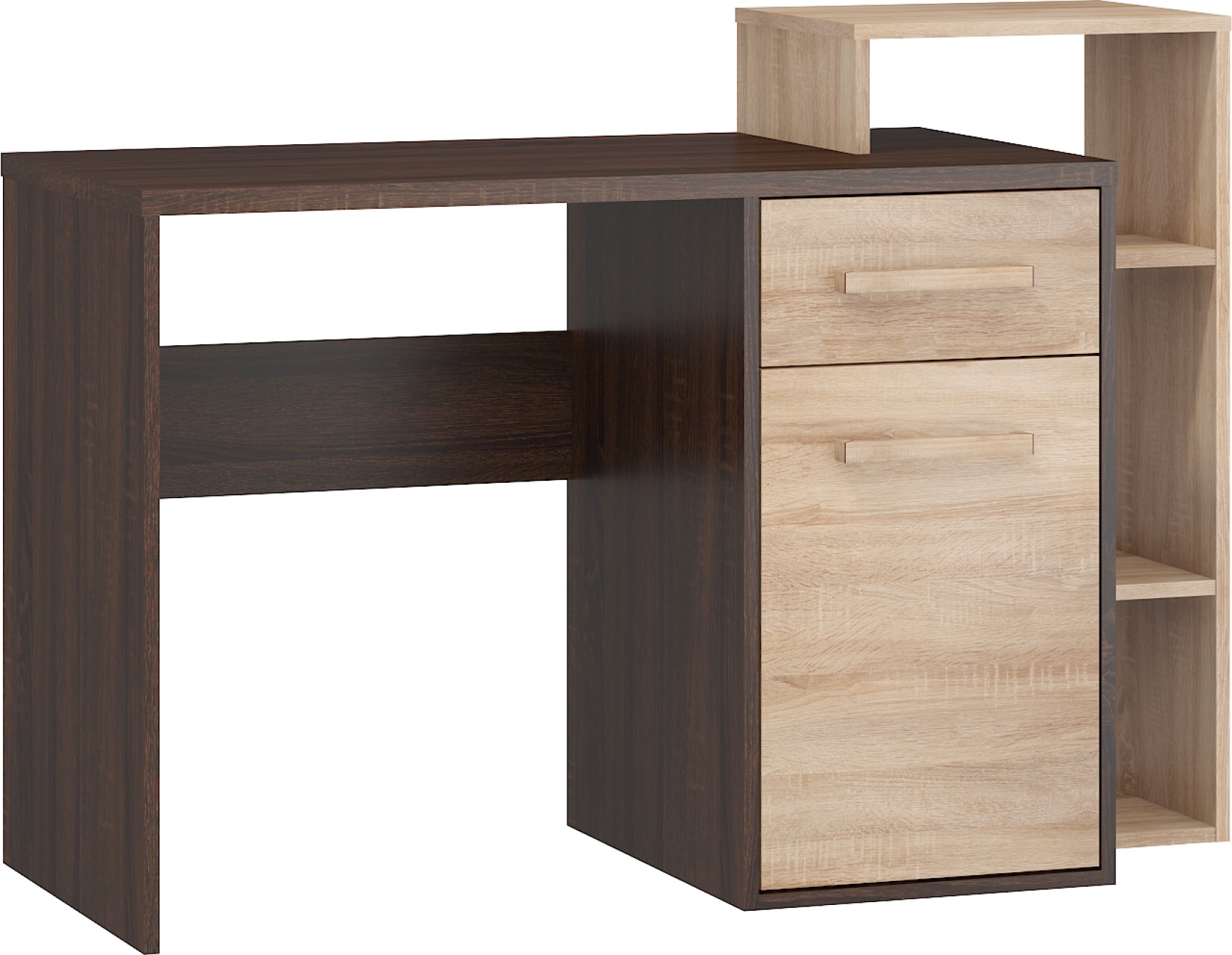 PC stůl P Rio 04 se skvěle hodí do moderně zařízených interiérů zejména předsíní. Zaujme vás svým neobvyklým avšak moderním designem a přírodním provedením. Je vyroben z kvalitních lamino desek o síle 16 mm a 25 mm. Desky mají ABS hranění, které zvyšuje odolnost pro odštípnutí hran. Součástí zásuvek a dvířek je zabudovaný systém tichého dovírání. Nabízíme vám několik barevných variant. Zajímavý design barev dodává stolu ještě více na luxusu a nadčasovosti.