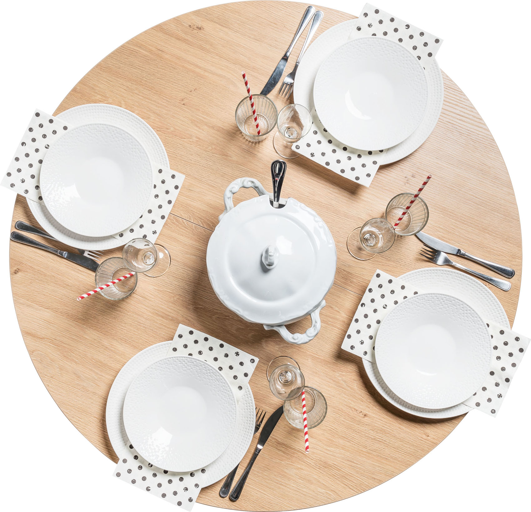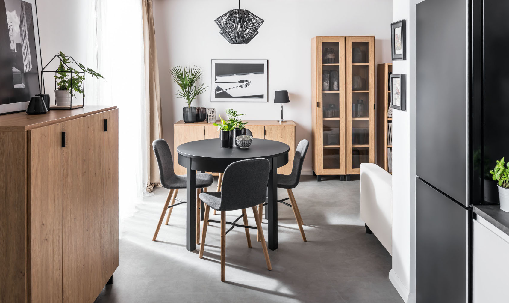 Rozkládací stůl Simple kulatý vás zaujme svým jednoduchým a zároveň luxusním designem. Horní deska je vyrobena z kvalitní a odolné nábytkové desky, dubové dýhy a nohy jsou z masivního borovicového dřeva v kombinaci s přírodní dubovou dýhou nebo bukového dřeva - záleží, jaký odstín stolu si vyberete. Nábytek Simple je jedinečný tím, že si sami zvolíte jeho barevné provedení.