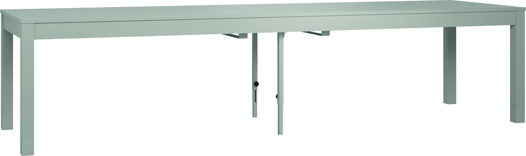 Díky kovovému kolejnicovému systému můžete hloubku stolu rozložit až do 3 různých velikostí - 79,4 cm, 121,4 cm a 166,4 cm. Veškeré vklady jsou vloženy pod horní deskou stolu. Při nejdelším rozkladu se ke stolu posadí až 10 lidí.