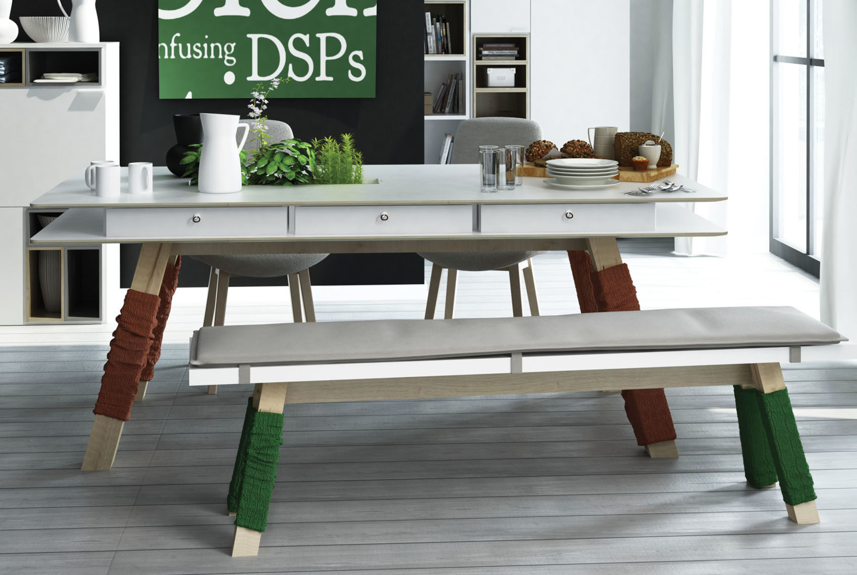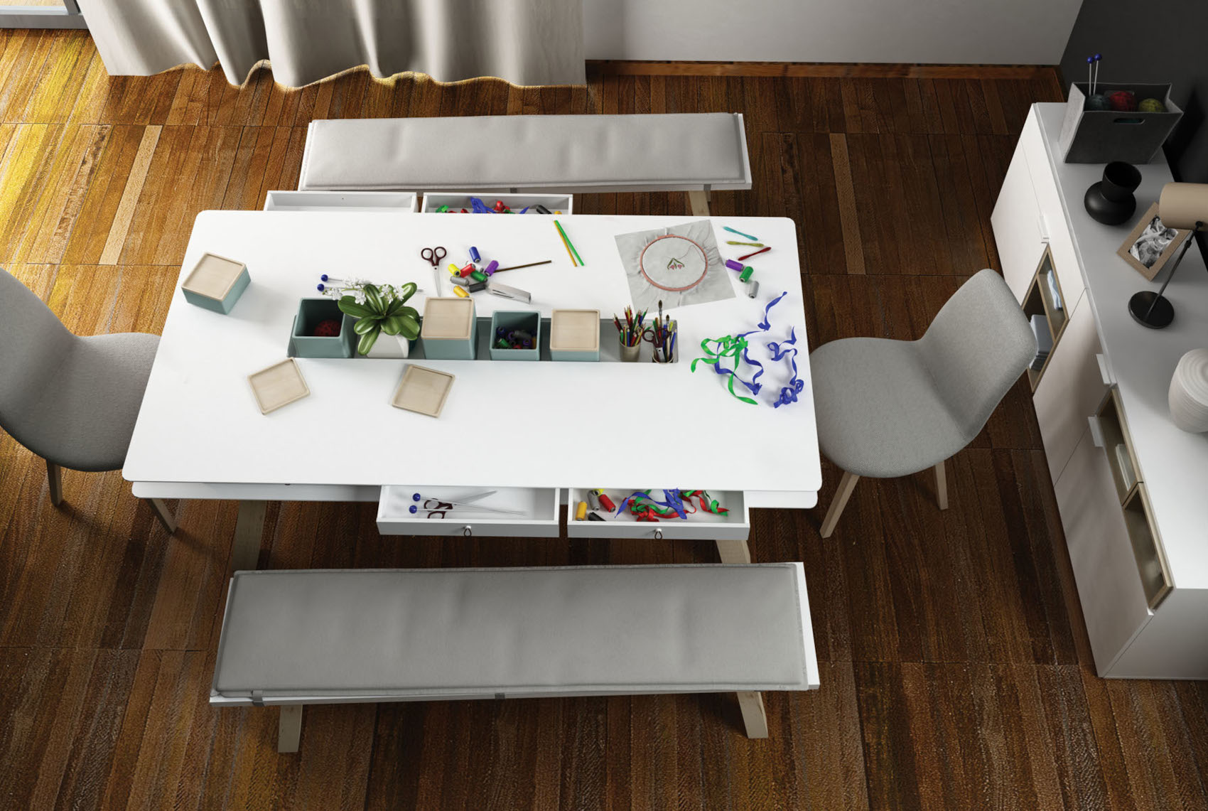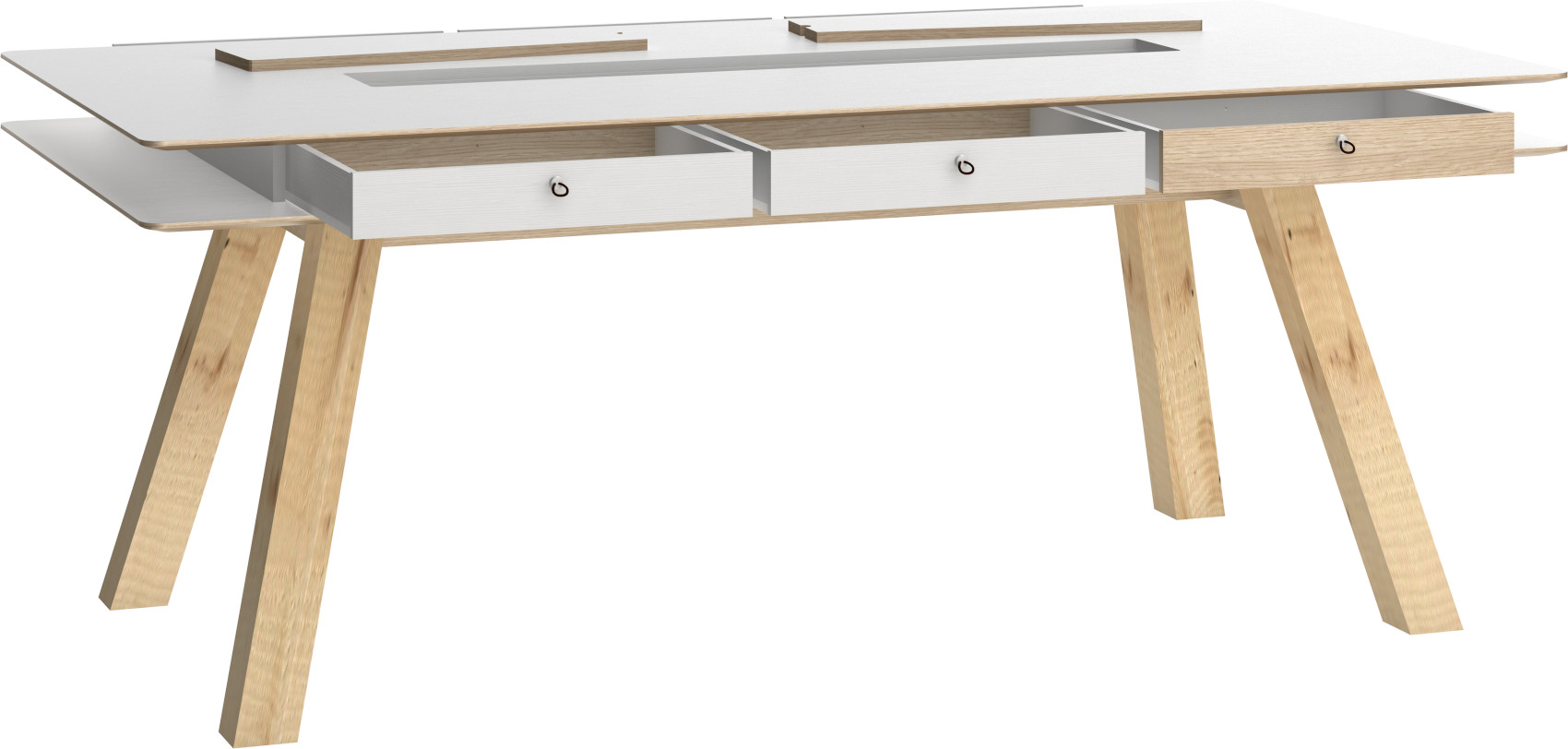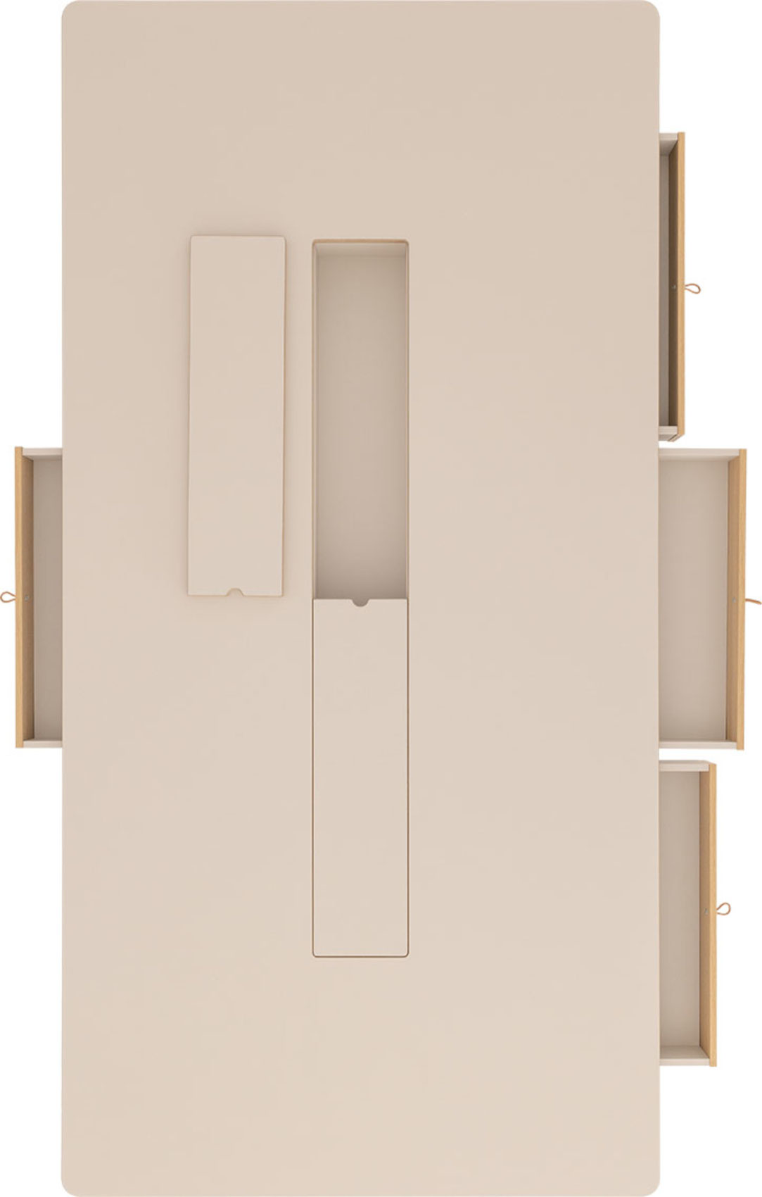 Uprostřed horní desky je otevřený prostor k uložení vašich oblíbených bylinek, květin nebo jiných dekorací. Výklenem můžete kdykoliv zakrýt speciálními kryty. Pod horní deskou jsou otevřené niky, do kterých lze dokoupit samostatné zásuvky 4You. Zásuvky jsou oboustranné, tudíž si můžete zvolit barvu přední strany - bílá nebo dub.