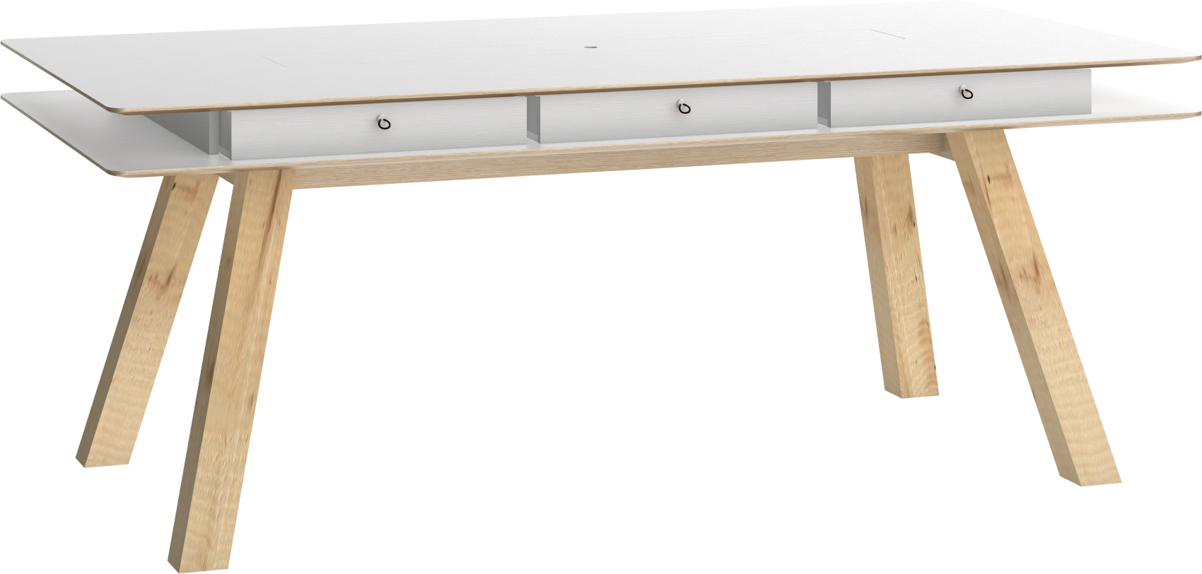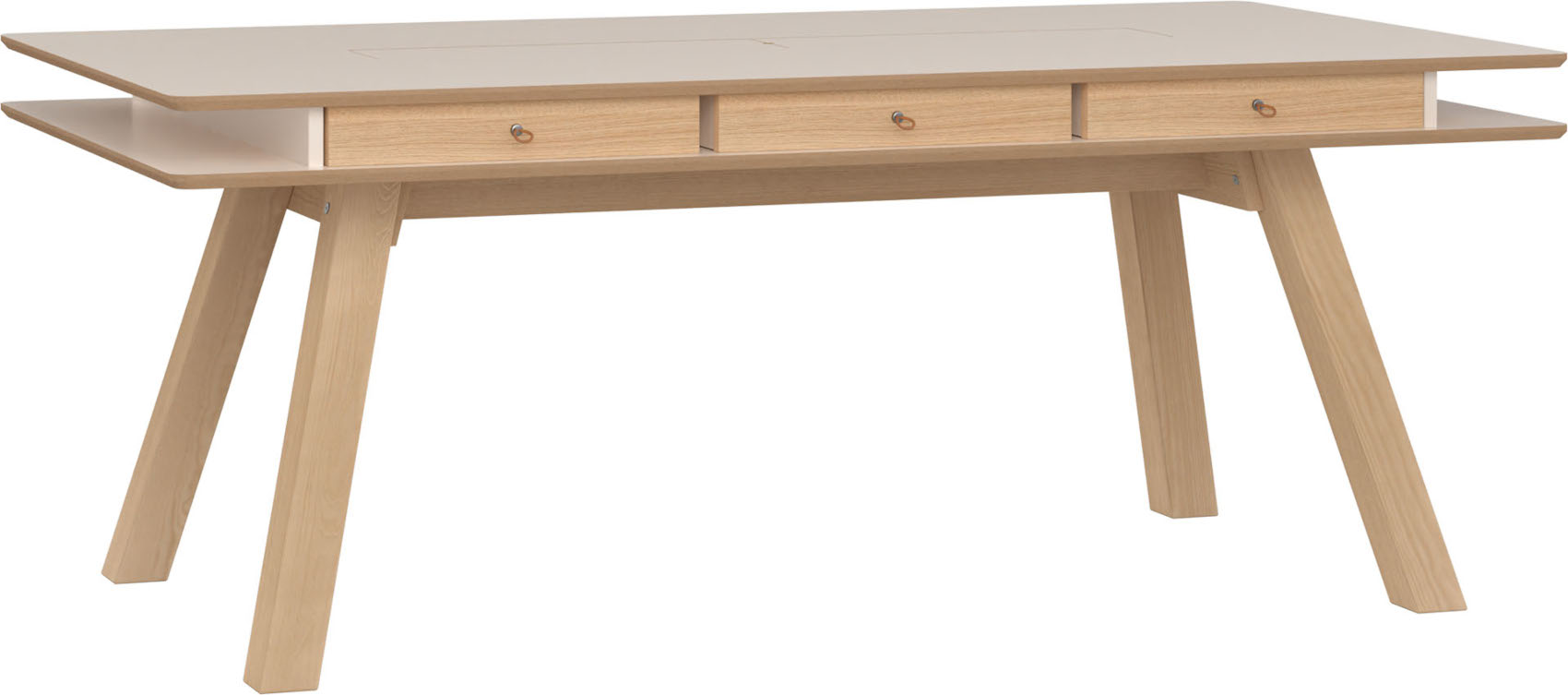 Jídelní stůl 4You 200x100 cm vás zaujme svým moderní designem v jasném odstínu v kombinaci s přírodním dubem. Je vyroben z kvalitního lamina s povrchovou vrstvou z masivního dřeva. Tento materiál je odolný vůči poškrábání a nečistotám. Úzké dlouhé nohy, které provzdušní váš interiér, jsou z lakovaného masivního borovicového dřeva. V naší nabídce naleznete 3 odstíny - dub, bílá a písková béžová.