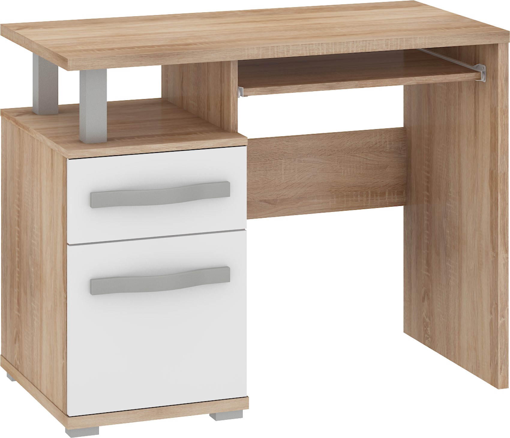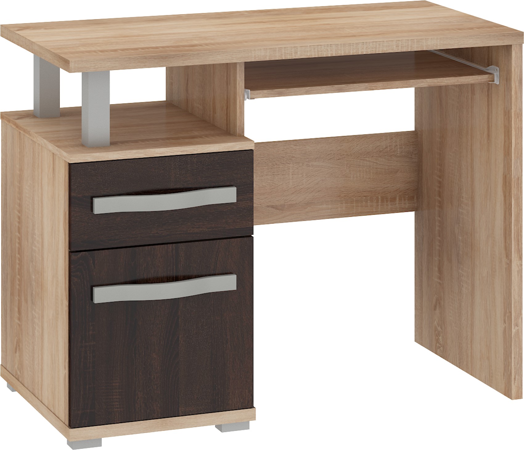 PC stůl 1D1S Angel 02 se skvěle hodí do moderně zařízených interiérů. Zaujme vás svým neobvyklým avšak moderním designem a přírodním provedením. Je vyroben z kvalitních lamino desek o síle 25 mm a 16 mm. Nábytek stojí na nízkých kovových nožkách. Nabízíme vám několik barevných variant. Zajímavý design barev dodává stolu ještě více na luxusu a nadčasovosti.