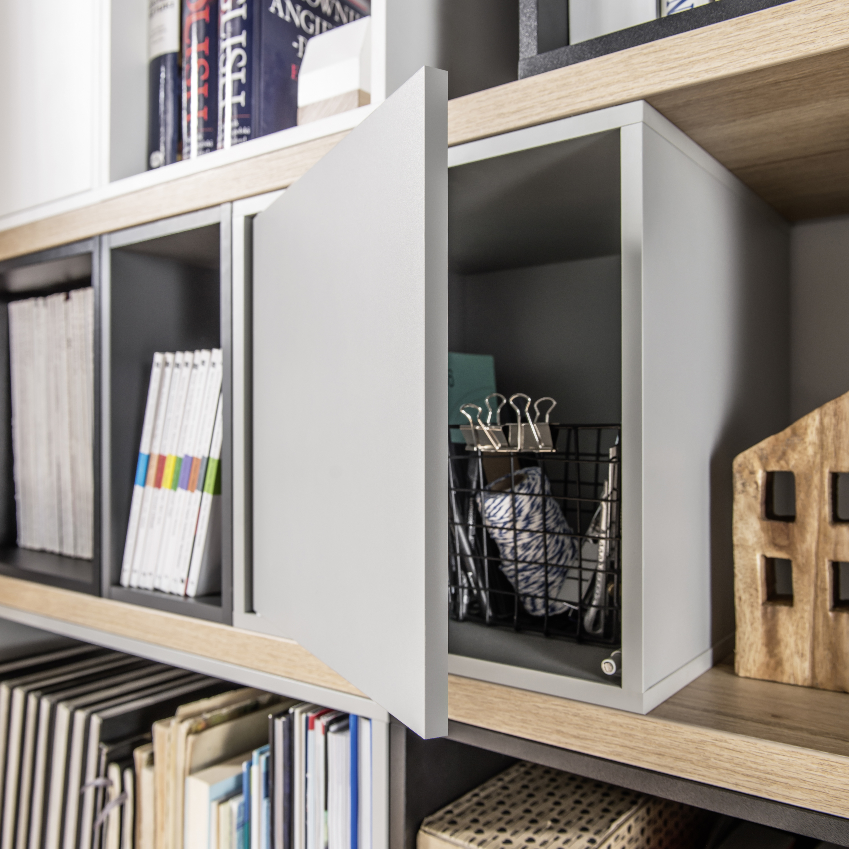 Součástí je několik otevřených k vystavení vašich oblíbených knih, dekorací, rámečků s fotografiemi nebo je lze vyplnit jednotlivými organizéry Balance. Stůl má také uzavíratelné skříňky, do kterých si můžete ukládat veškeré nezbytnosti nebo dokumenty.