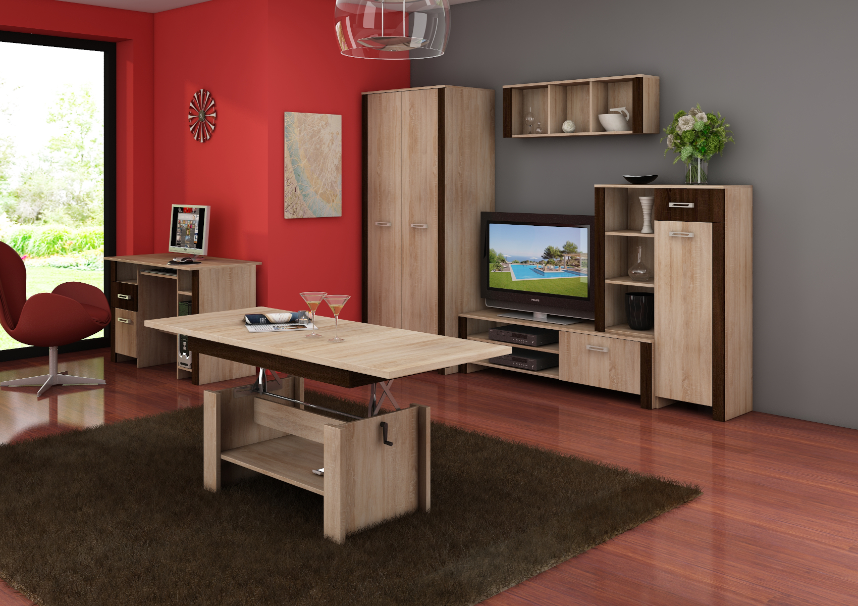 Psací stůl Hugo 01 se skvěle hodí do moderně zařízených interiérů. Zaujme vás svým neobvyklým avšak moderním designem a přírodním provedením. Je vyroben z kvalitních lamino desek o síle 16 mm. Příjemný design nábytku doplňují stříbrné úchytky z odolného tvrzeného plastu. Nabízíme vám několik barevných variant. Zajímavý design barev dodává stolu ještě více na luxusu a nadčasovosti. Jednotlivé díly jsou variabilní, lze je navzájem kombinovat a vytvořit si tak pracovnu či studentský pokoj podle svých představ.