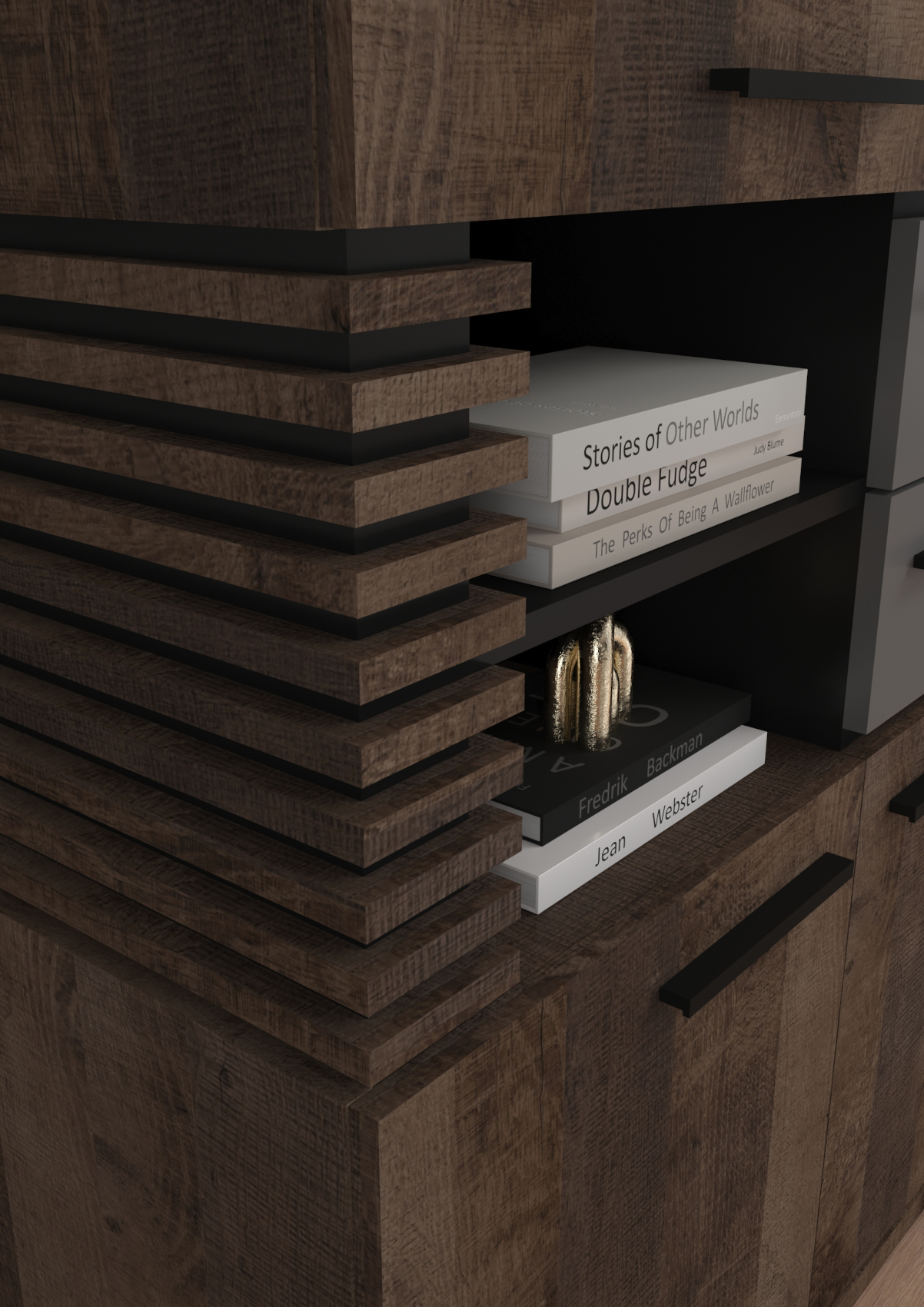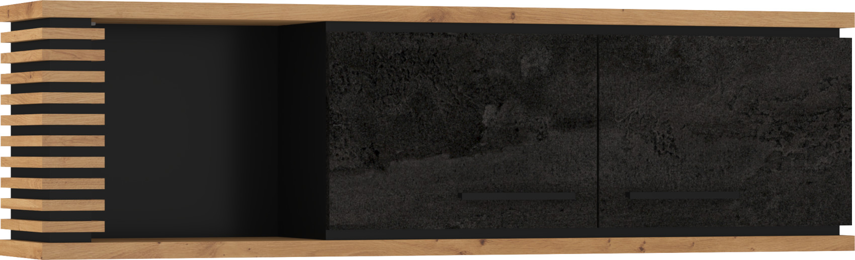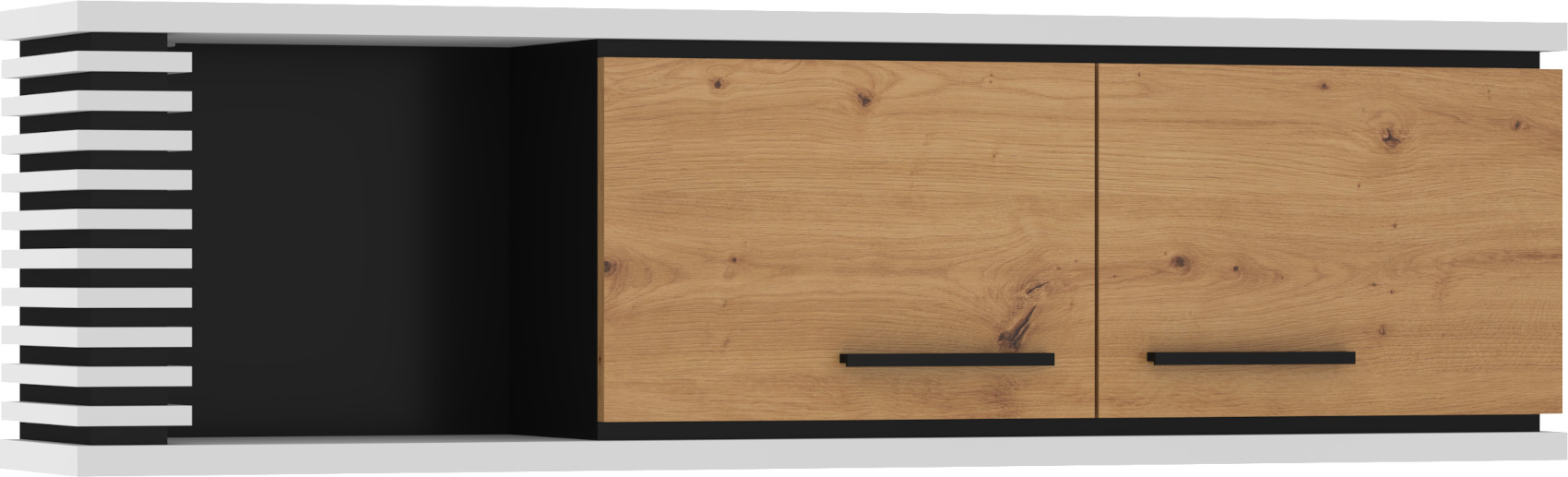 Součástí skříňky jsou 2 dvířka a 1 otevřená nika k vystavení vašich oblíbených dekorací, knih nebo rámečků s fotografiemi.