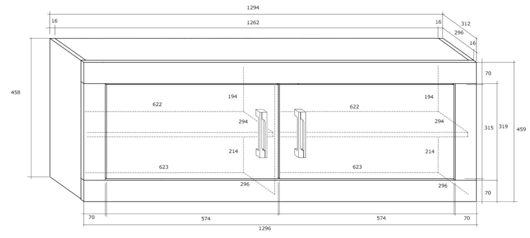 Součástí jsou 2 plná dvířka, za kterými jsou vloženy 2 lakované police.