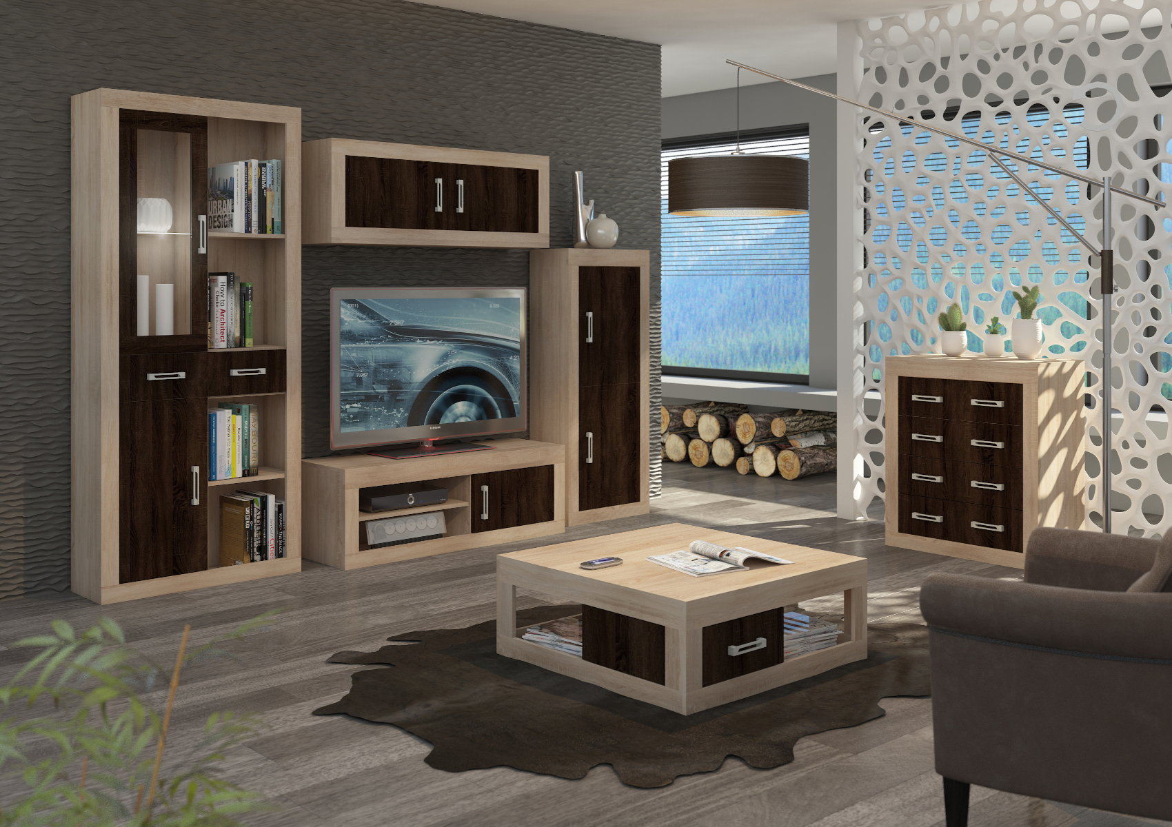 Závěsná skříňka Verin 2D 23 se skvěle hodí do moderně zařízených interiérů. Zaujme vás svým neobvyklým avšak moderním designem a přírodním provedením. Je vyrobena z kvalitních lamino desek o síle 16 mm. Nabízíme vám několik barevných variant. Zajímavý design barev dodává skříňce ještě více na luxusu a nadčasovosti. Jednotlivé díly jsou variabilní, lze je navzájem kombinovat a vytvořit si tak obývací sestavu podle svých představ.