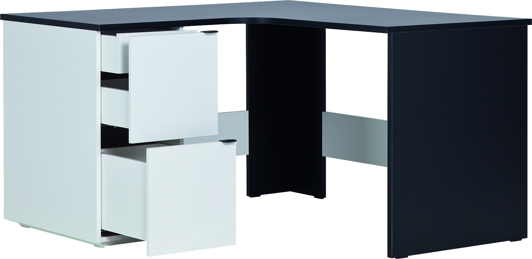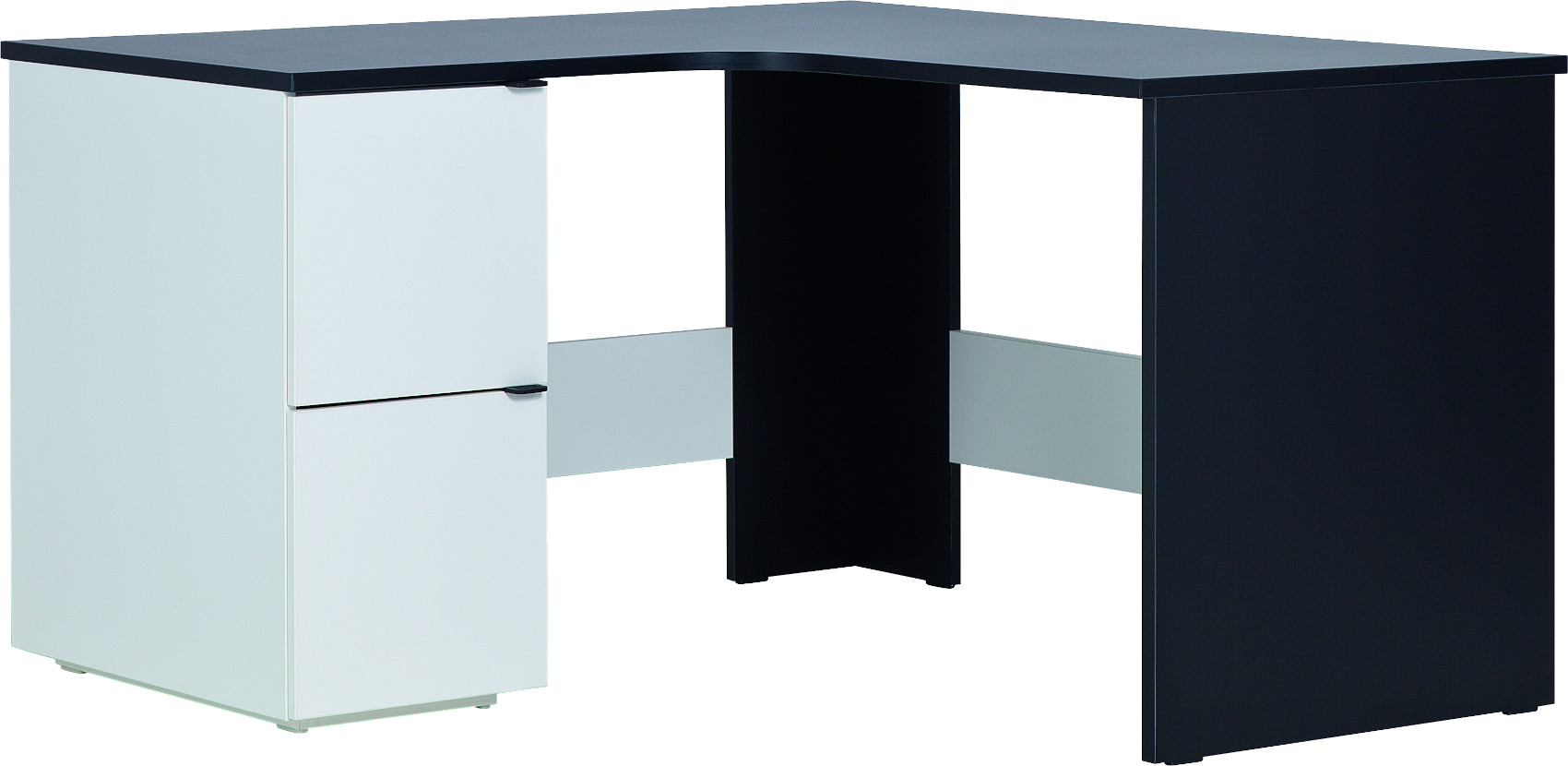 Rohový psací stůl Young Users vás zaujme svým prostým designem s moderními prvky. Je vyroben z kvalitního lamina o síle 16 mm odolného vůči poškrábání a nečistotám. Zásuvky mají zabudovaný systém tichého dovírání.