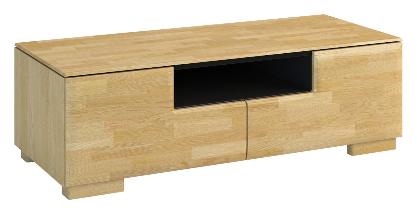 Skříňka má 2 plná dvířka a pod horní deskou je malá otevřená nika k uložení elektroniky.