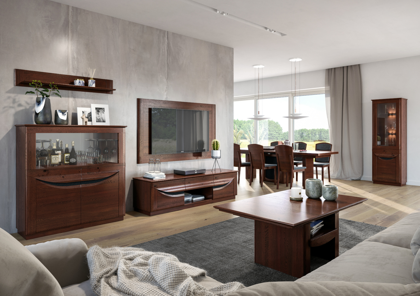 TV panel Bari maxi je vyroben z přírodní dubové dýhy. Kvalitní lakování a moření dodává nábytku přírodní vzhled dřeva a zvýrazňuje strukturu lét.