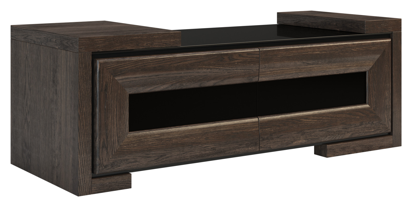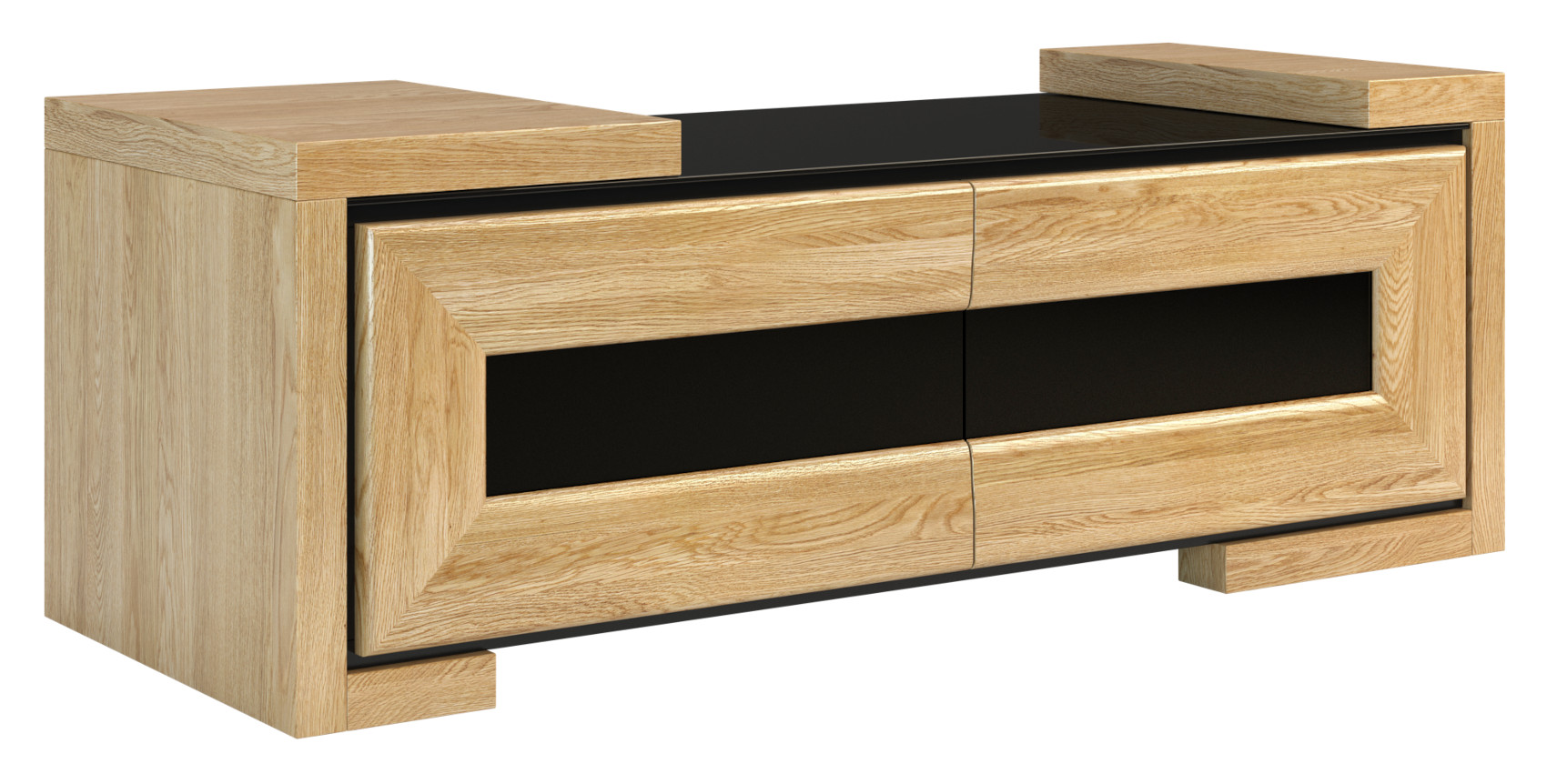 Skříňka Corino 2DS symetrická vás zaujme moderním a luxusním designem. Systémový nábytek Corino je jedinečný svými přesnými geometrickými tvary, černým ohraničením a horní deskou ze skla Lacobel. Skříň je vyrobena z masivního dubové dřeva. Díky kvalitnímu lakování a moření má nábytek přírodní vzhled masivního dřeva a jsou viditelné struktury lét. Máte na výběr ze 2 barevných variant.
