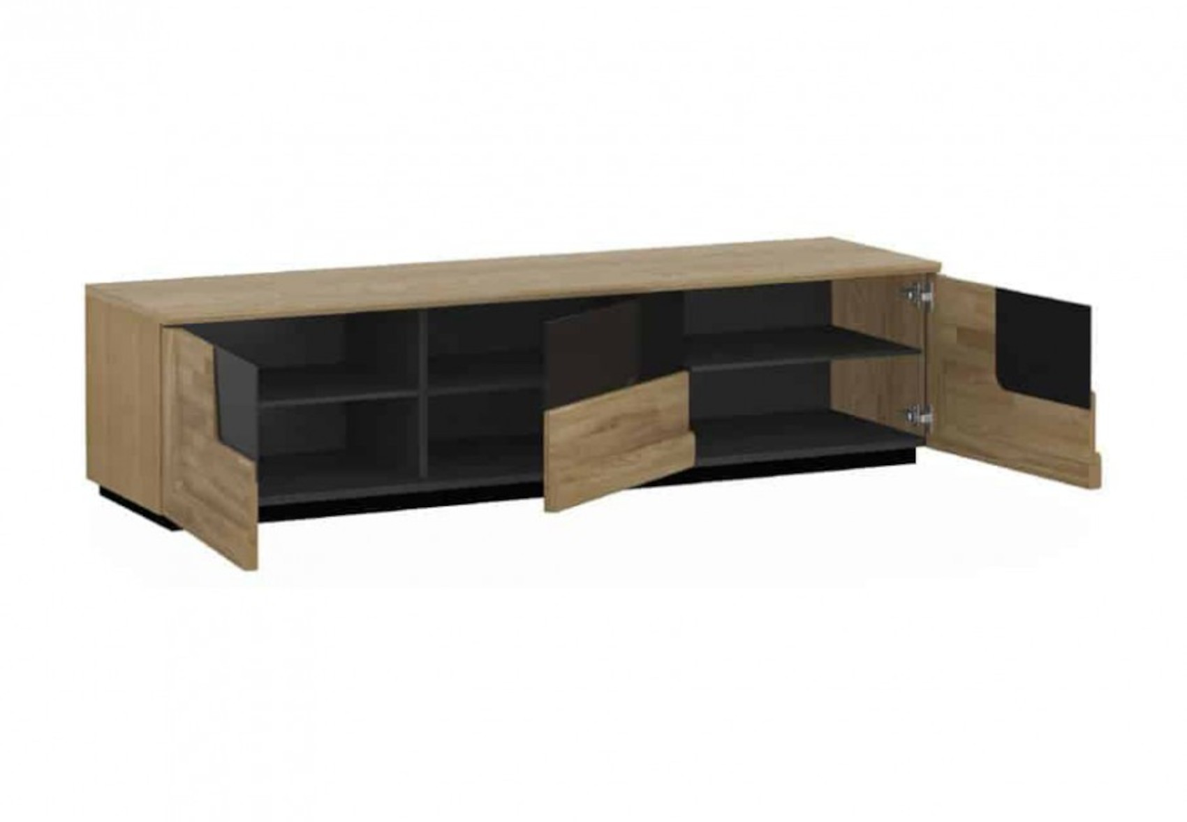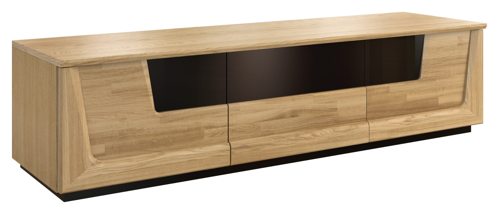 Skříňka Maganda 3D vás zaujme svým moderním a luxusním designem. Je vyrobena z masivního dubového dřeva s černými detaily ze skla Lacobel. Vzhledem k použitému materiálu se jedná o stabilní nábytek. Kvalitní technologie lakování a moření dodává nábytku přírodní vzhled a zvýrazňuje jeho léta. Máte možnost si vybrat ze 2 barevných variací moření dřeva.