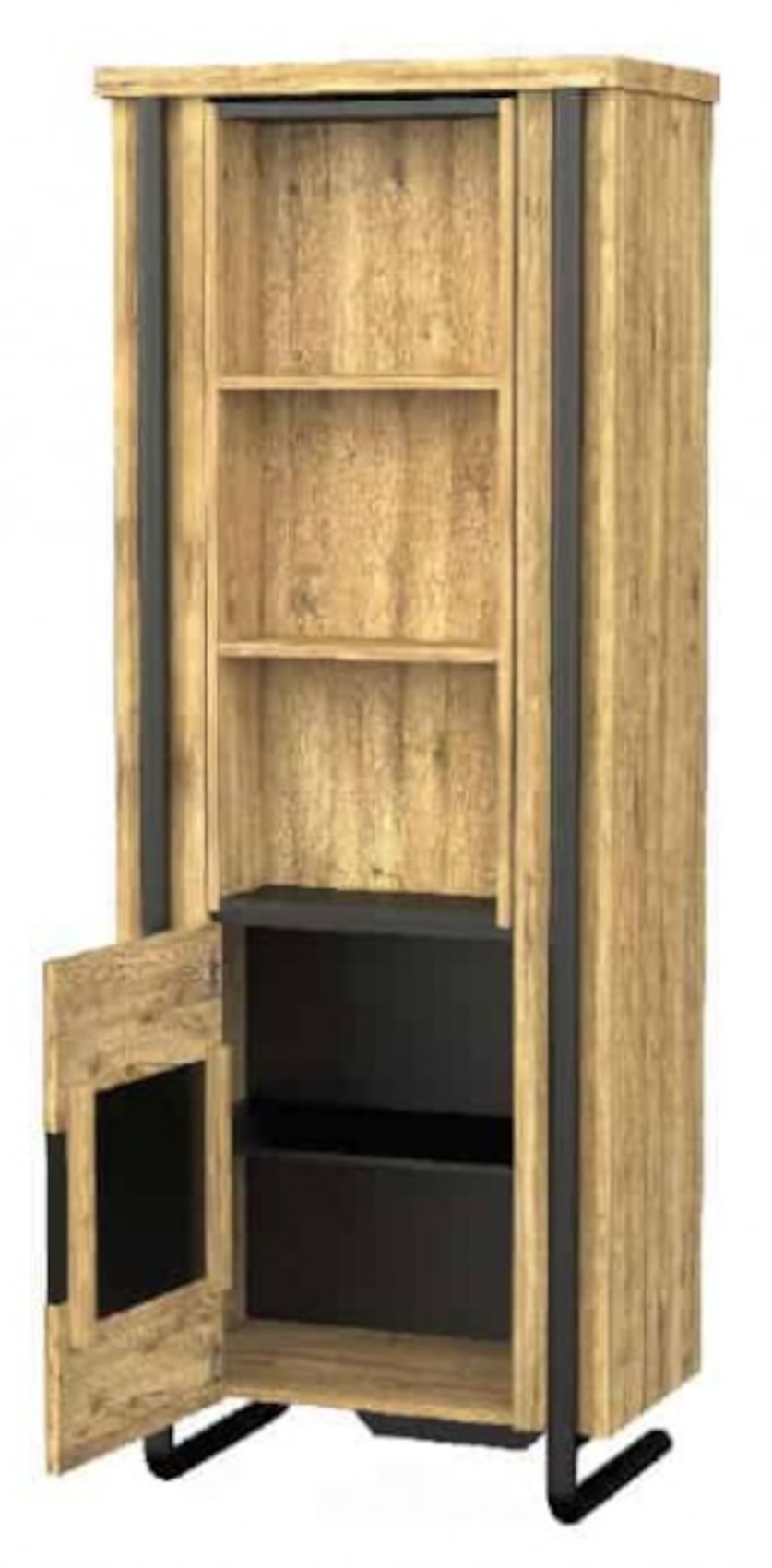 V horní části skříňky je bar na rotačním kloubu, pomocí kterého můžete pouhým otočením změnit vnitřní uspořádání. Na jedné straně je policový systém se 2 lakovanými policemi a na druhé straně je bar se závěsy na sklenice a držáky na víno. Pod barem jsou 1 plná dvířka s 1 lakovanou policí. Za příplatek si můžete zvolit variantu s LED podsvícením, které dodá nábytku nádech elegance a zpříjemní vám večerní atmosféru.