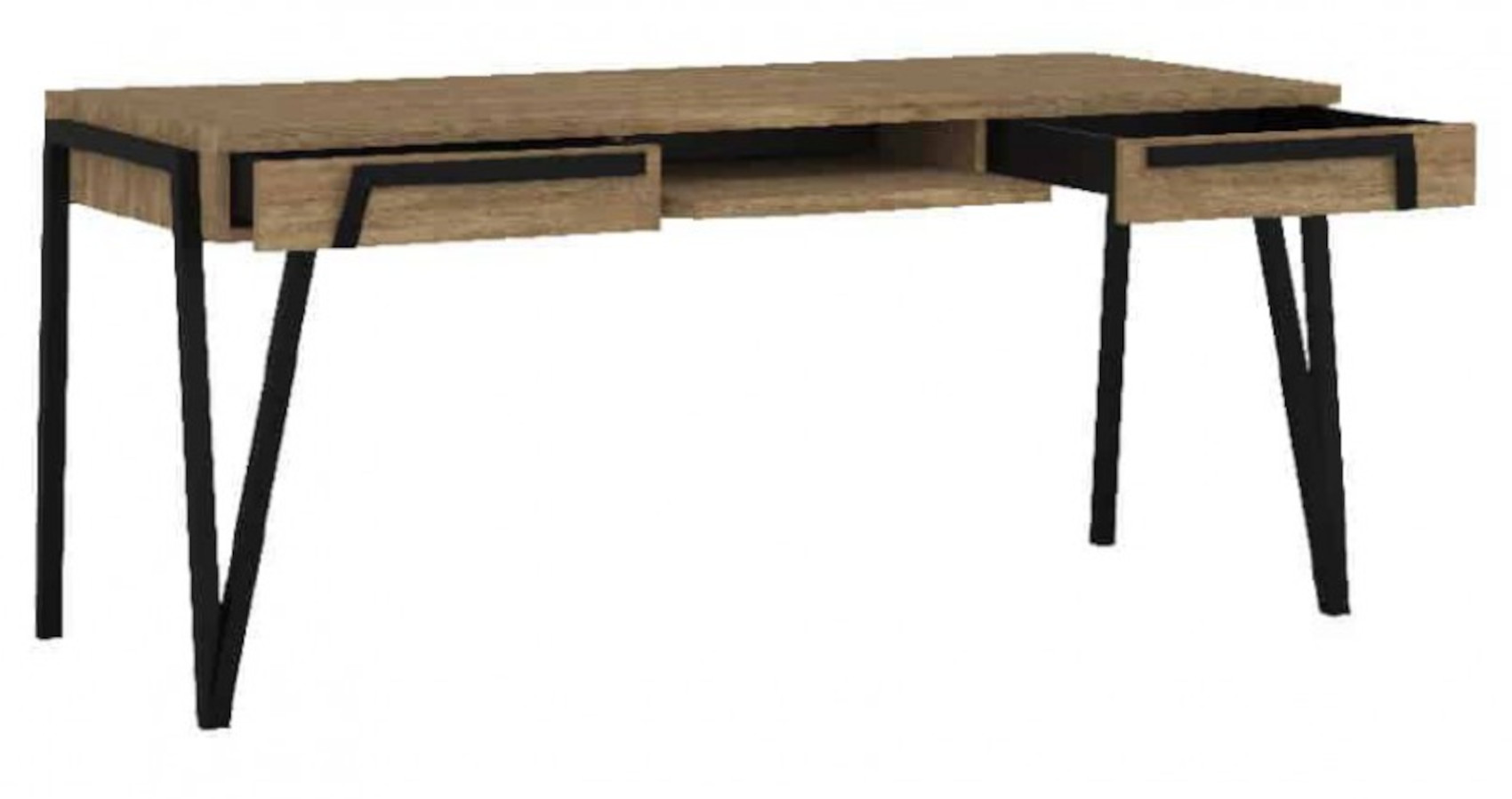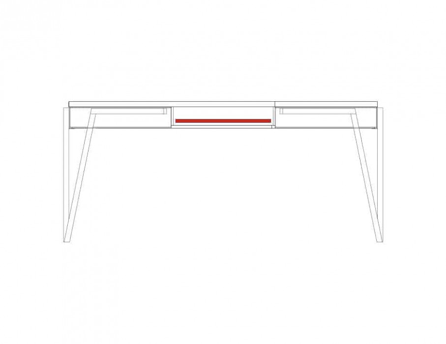 Stůl má pod horní deskou 2 zásuvky na kovových pojezdech a mezi nimi 1 výsuvnou lakovanou polici.